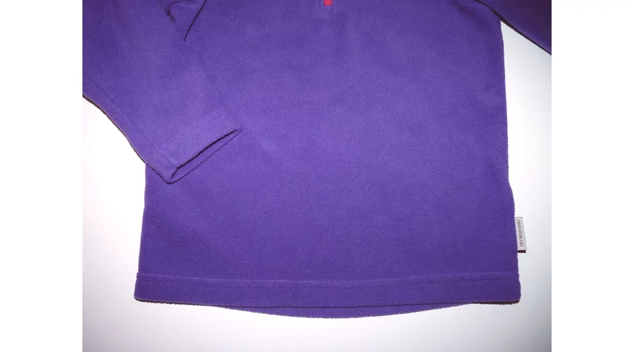 Puha, kényelmes, lila polár felső, bolyhozott felülettel, magasított nyakán kontrasztos színű cipzárral. Könnyű, kis helyen elfér, hőtartó, nem igényel vasalást. Jó állapotú. Beleírt méret: nincs. |
