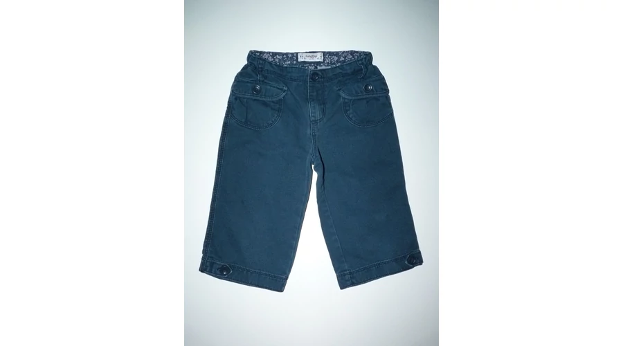 Vagány, kék kislány térdnadrág gumival állítható derékkal, gombos-cipzáros sliccel, derekán övbújtatókkal, csinos, zsebfedős/húzott zsebekkel, kellemes bordázott pamut anyagból. Beleírt méret 5 év. |