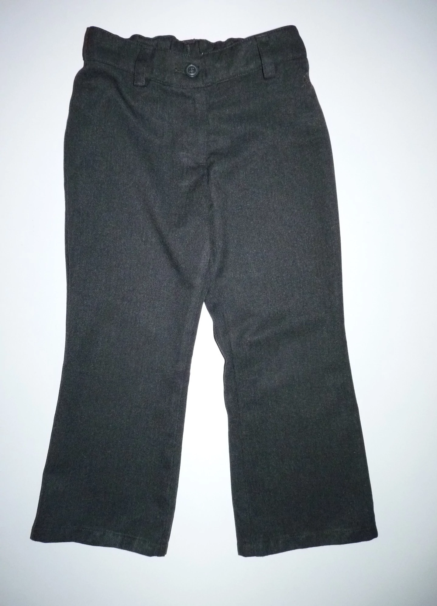 Csinos, sötétszürke lány alkalmi nadrág. Kényelmes, gumival állítható derekú, övbújtatókkal, szolid hímzéssel. Gombos-cipzáros kivitel. Jó állapotú, tökéletes ünnepi alkalmakra, családi összejövetelekre. Beleírt méret 5 év (110) |