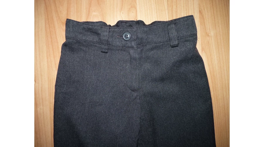 Sötétszürke szövet alkalmi nadrág, állítható gumírozott derékkal, gombos-cipzáros sliccel, oldalzsebekkel, derekán övbújtatókkal, bal oldalt "Next" hímzéssel. Jó minőségű és állapotú. Beleírt méret 5 év (110cm) |