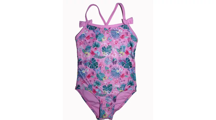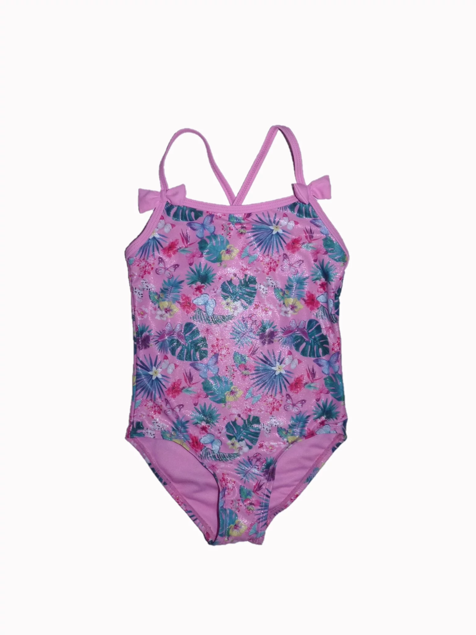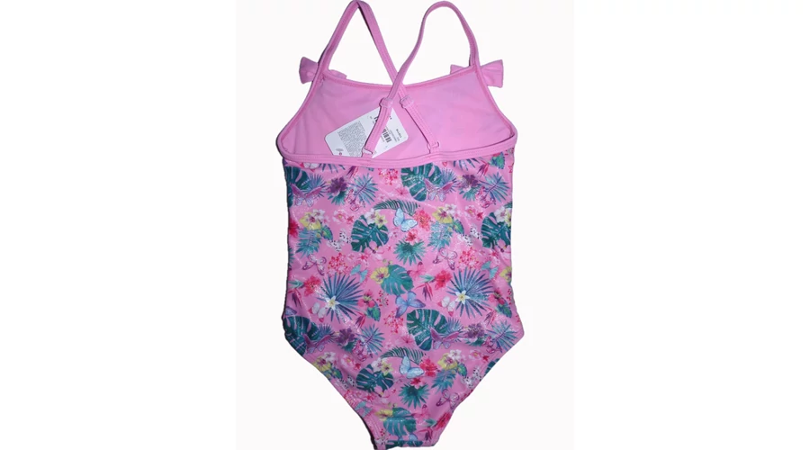 Csinos, teljesen bélelt kislány fürdőruha keskeny, állítható, keresztezett vállpánttal, elől dekoratív masnikkal, vidám pillangós-virágos mintával, gyönyörűen csillogó felülettel. A mért váll-ülep hossz a pántot leghosszabbra állítva mért hossz! Új, címkés termék. Beleírt méret 4-6 év (110/116) |