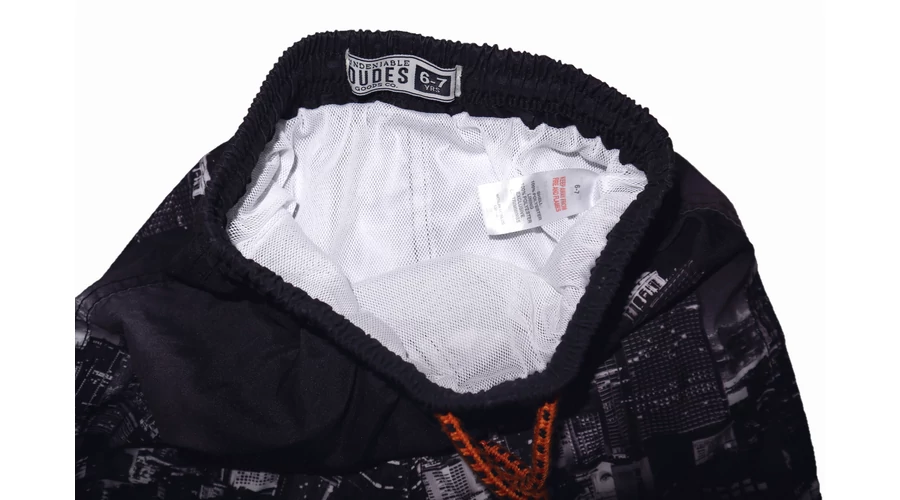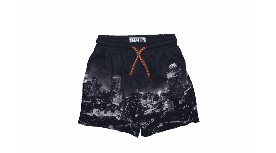 Vagány rövid úszónadrág/rövidnadrág gumírozott derékkal, belül puha neccel, aktív kötővel, különleges mintával. Beleírt méret 6-7 év. |
