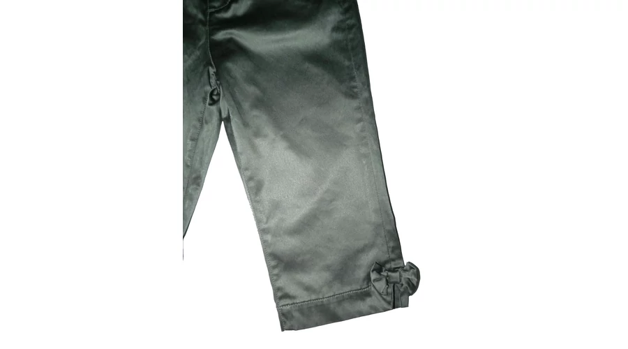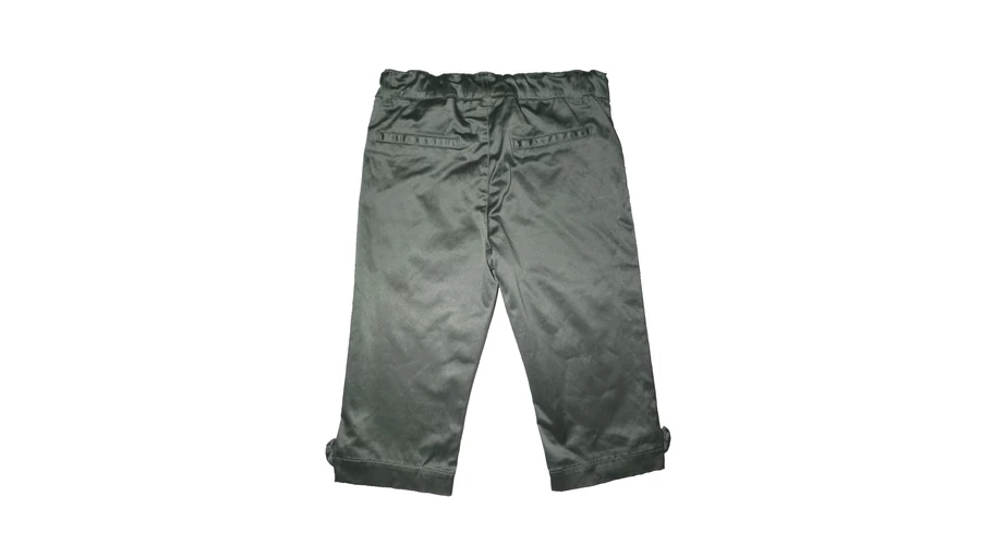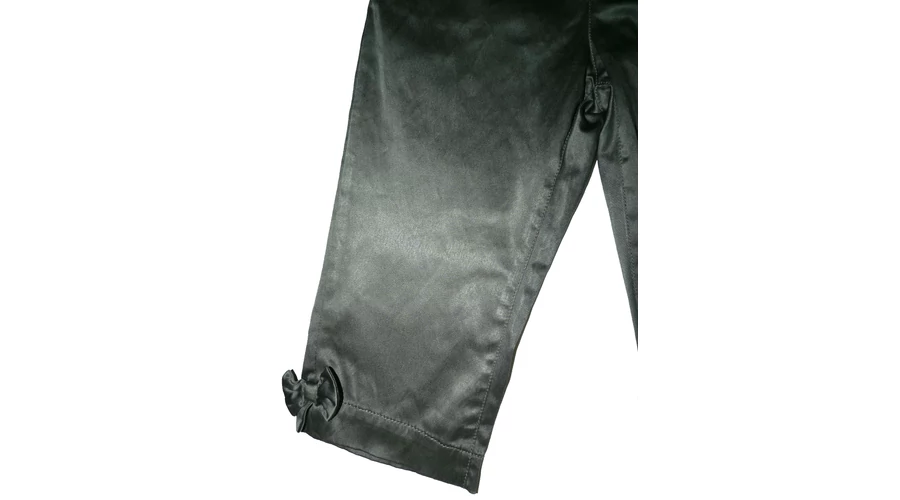 Fényes térdnadrág állítható gumírozott derékkal, patentos-cipzáros sliccel, derekán övbújtatókkal, szárán kis masnikkal. Különleges színének tónusa változik, ahogy ráesik a fény, szürkés-zöldes árnyalatú. Nagyon jó állapotú, csodaszép, különleges darab. Beleírt méret 7-8 év (128) |