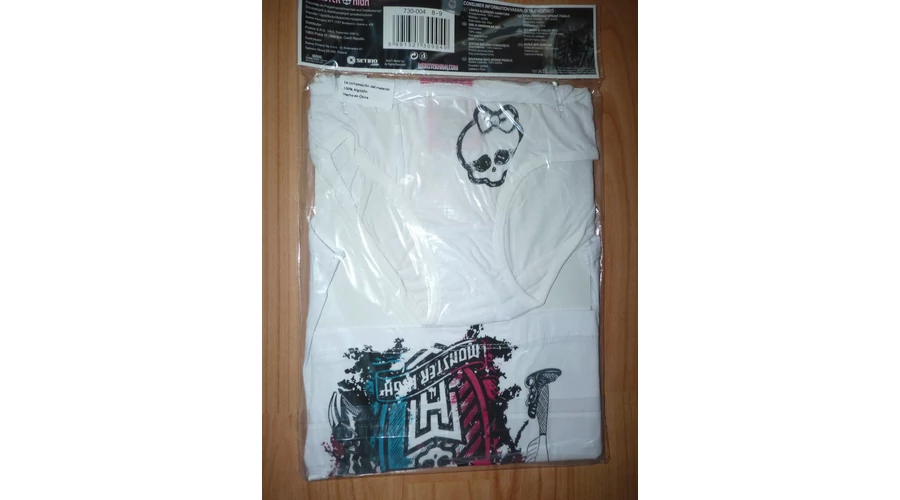 Lányka alsónemű garnitúra, Monster High mintával. Anyagösszetétel: 100% pamut. Ráírt méret: 8-9 év (128/134) |