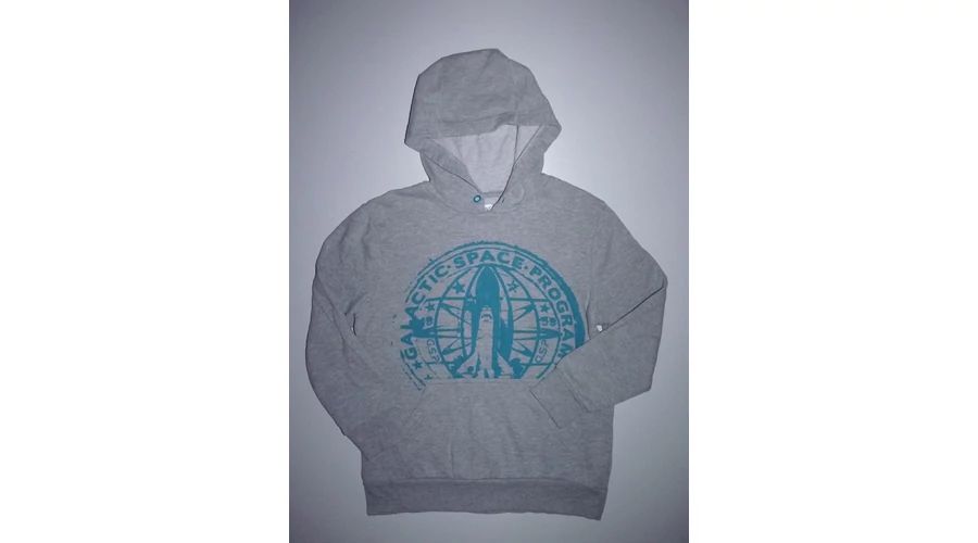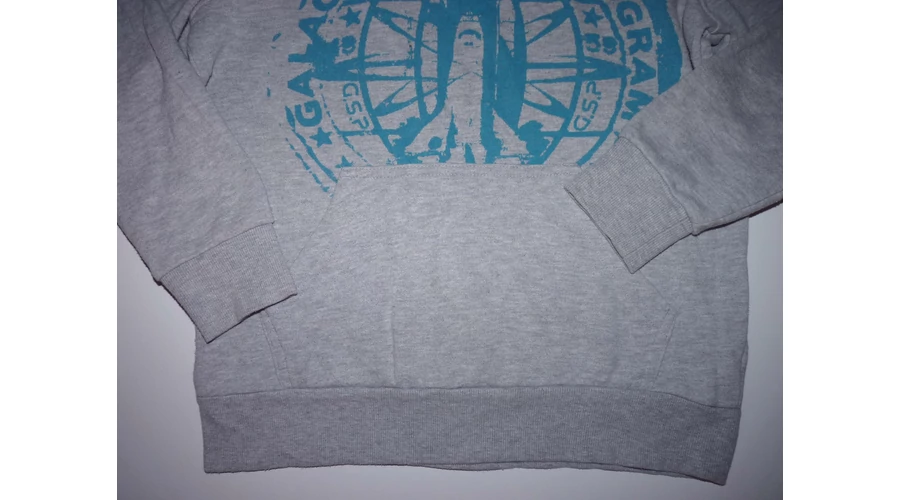 Hosszú ujjú melegítő felső kapucnival, elöl kenguruzsebbel, kézelőjén és alsó szegélyén bordás passzéval, puhára bolyhozott fonákkal. Elején hímzett Slazenger logo. Némi bolyhosodás, a kapucni szegecse kopottas, egyiknél apró varrások (nem feltűnő). Beleírt méret 12-13 év (158) |