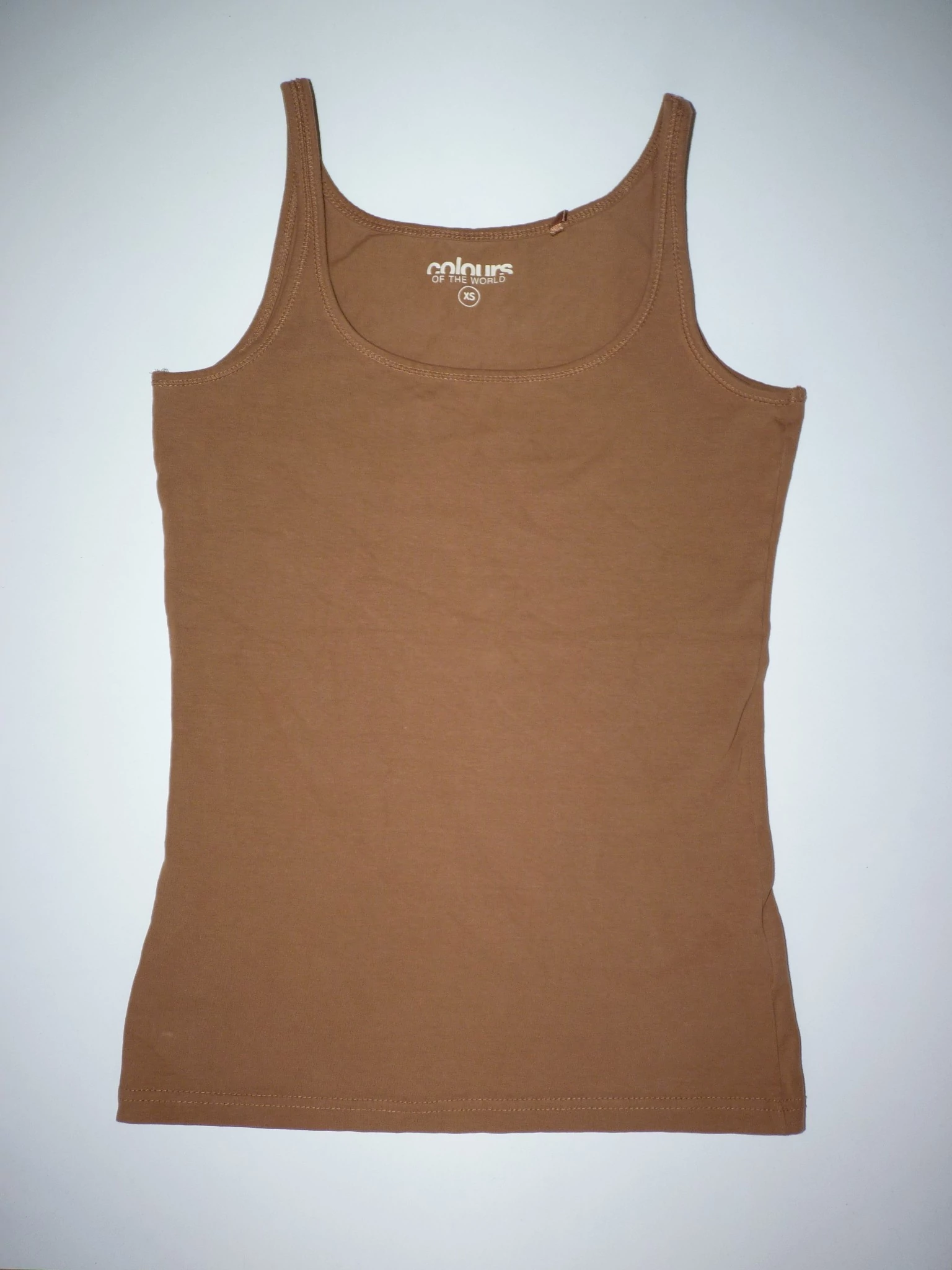 Kellemes viseletű, egyszínű, csinos ujjatlan felső. Barna színű, rugalmas anyagú, kényelmes darab. Nagyon jó állapotú. Beleírt méret XS. |