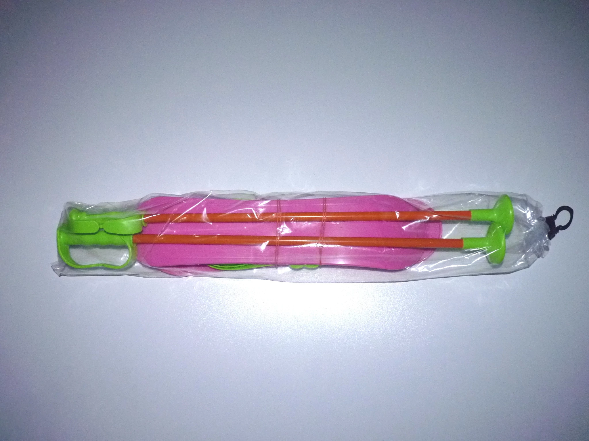 Széles gyerek síléc állítható pánttávolsággal, mely lehetővé teszi, hogy különböző típusú cipőkhöz rögzíthető legyen. Tartós műanyagból készült, amely a téli körülményeknek ellenáll. A készlet tartalmazza a síbotokat is. (Az utolsó termékkép illusztráció, a termék rózsaszín színű!)Leírás:Rúd: 57 cm |