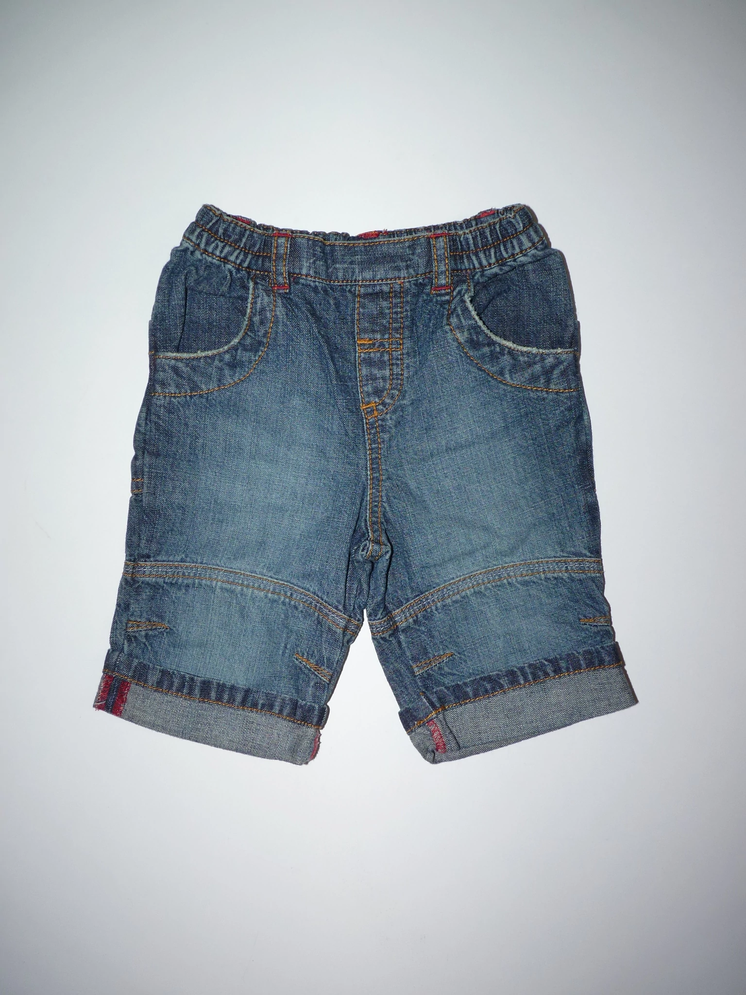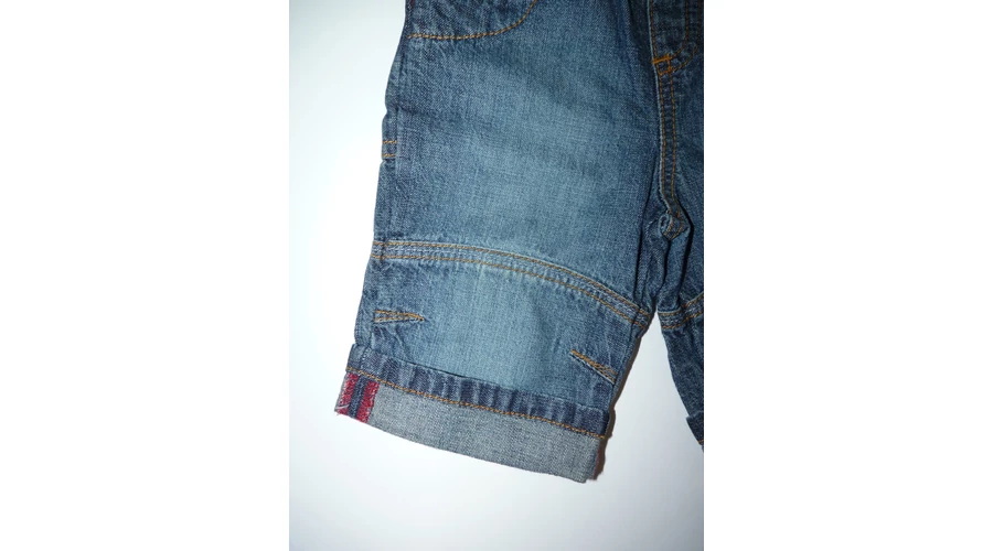 Kényelmes, puha farmernadrág, gumis derékkal, vagány koptatással térdnél és a zsebeknél, térdvarrással. Tökéletes fotózáshoz, vagy babakocsiba egyaránt. Beleírt méret 0-3 hó. |