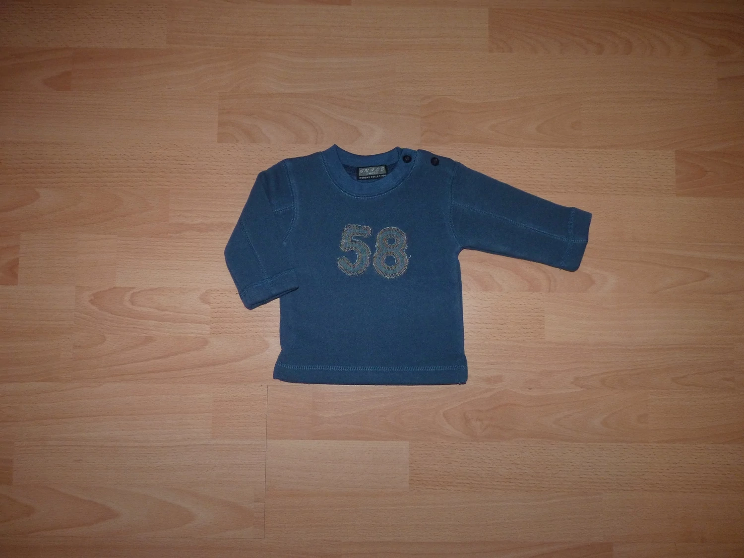 Kellemes viseletű, bolyhos belsejű, puha felső. Tökéletes kabát alá, vagy tavaszi/őszi időben, vagy szabadidő felsőként. Nyakán gombok, hogy könnyű legyen az öltöztetést. Nagyon jó állapotú. |
