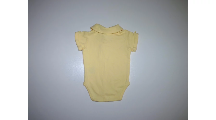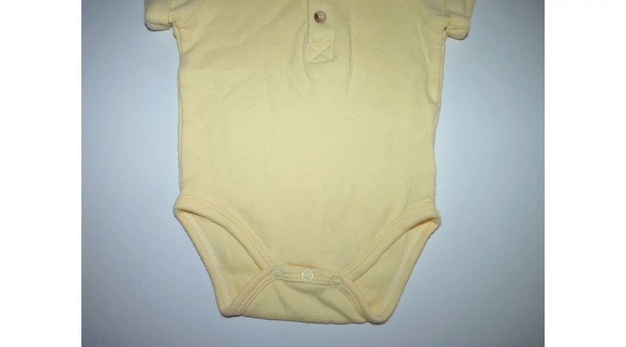 Kényelmes, rövid ujjú pamut body gombpánttal, rávarrt felhajtásos ujjal, lábközépen három patenttal. Jó állapotú. Beleírt méret 3-6 hó. |