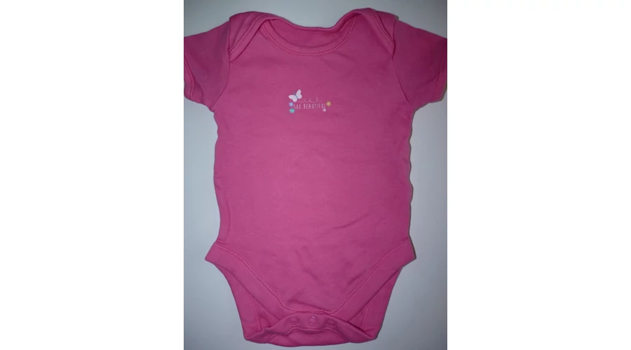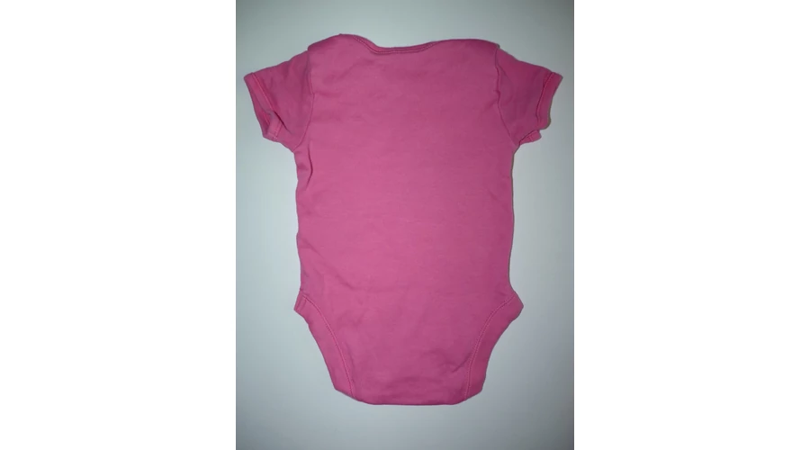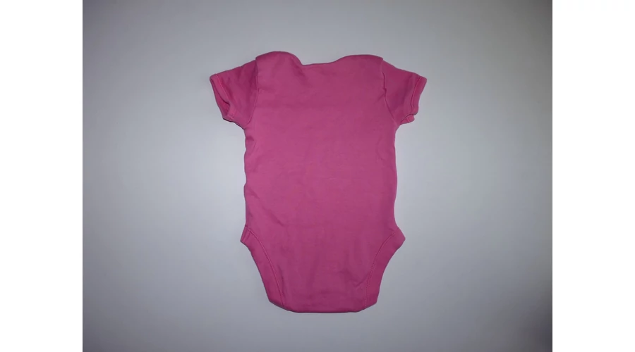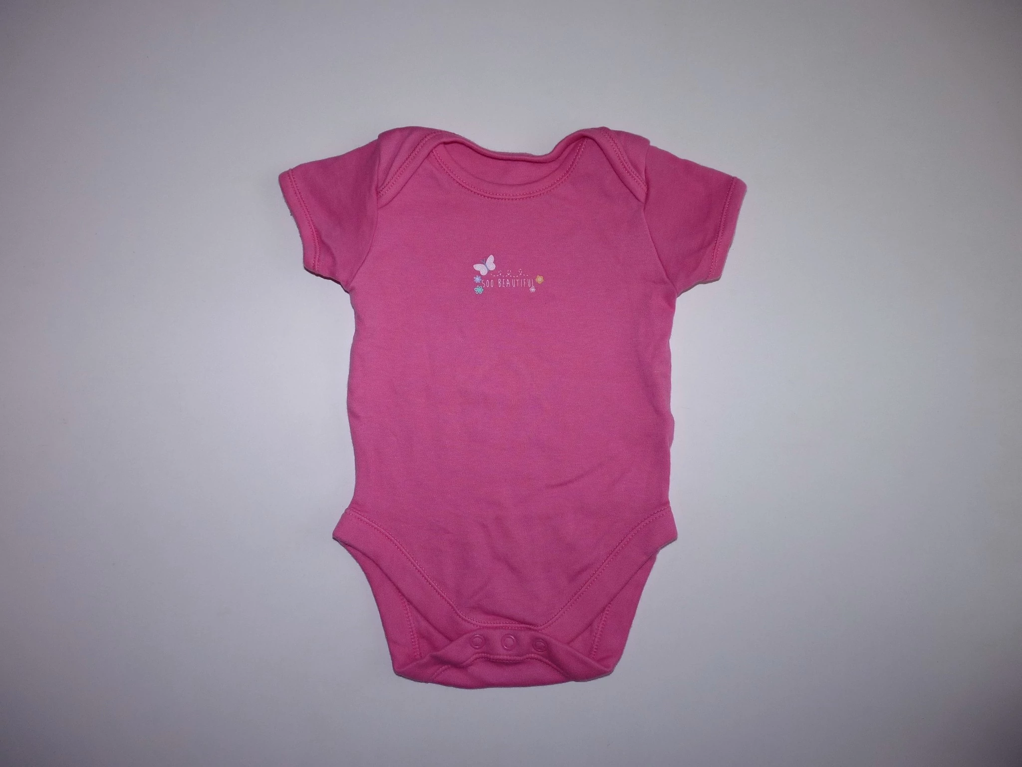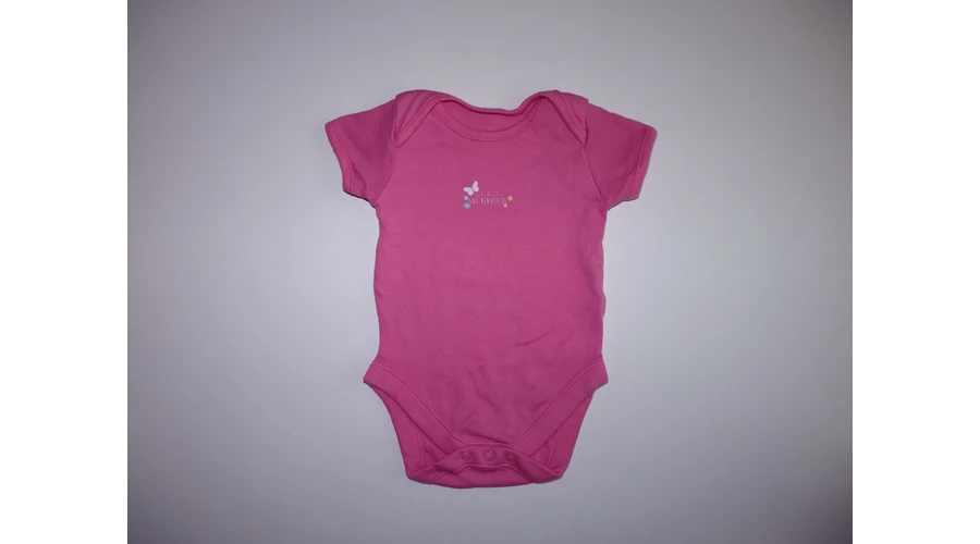 Kellemes viseletű, erős rózsaszín színű, rövid ujjú pamut body. Elején kis pillangó és virág mintával, és "soo beautiful" felirattal. A mért hossz a kihúzás nélkül mért hossz. Nagyon jó állapotú. Beleírt méret 6-9 hó (68-74). |