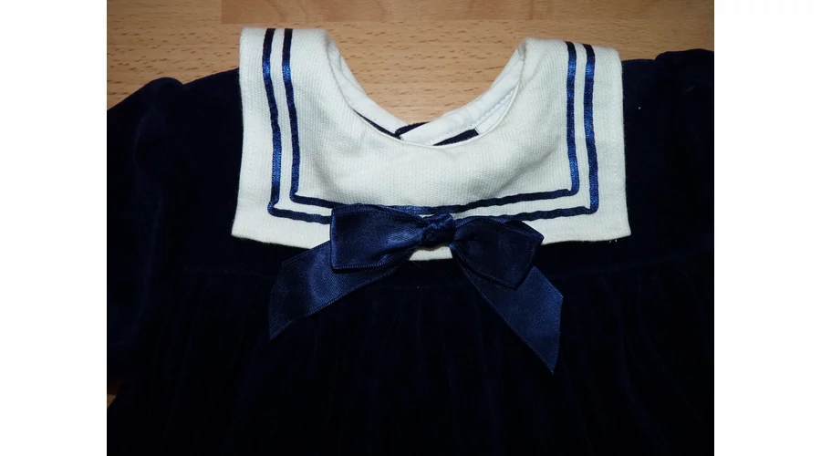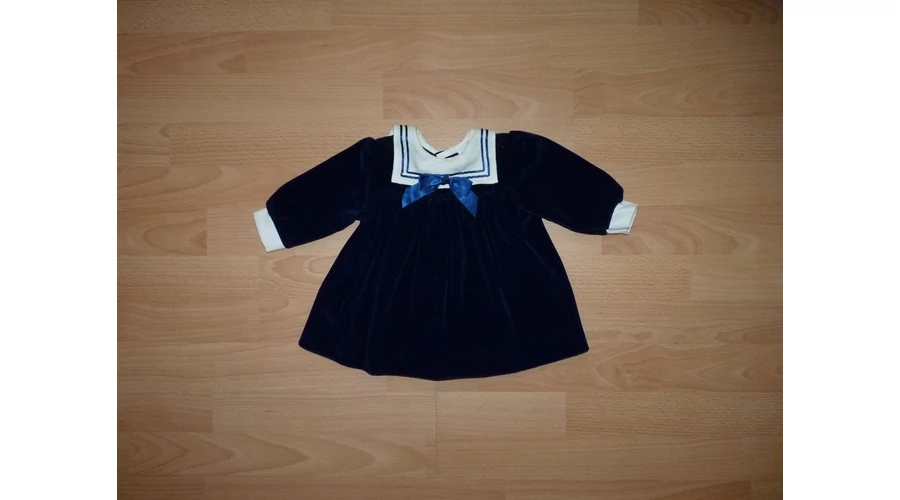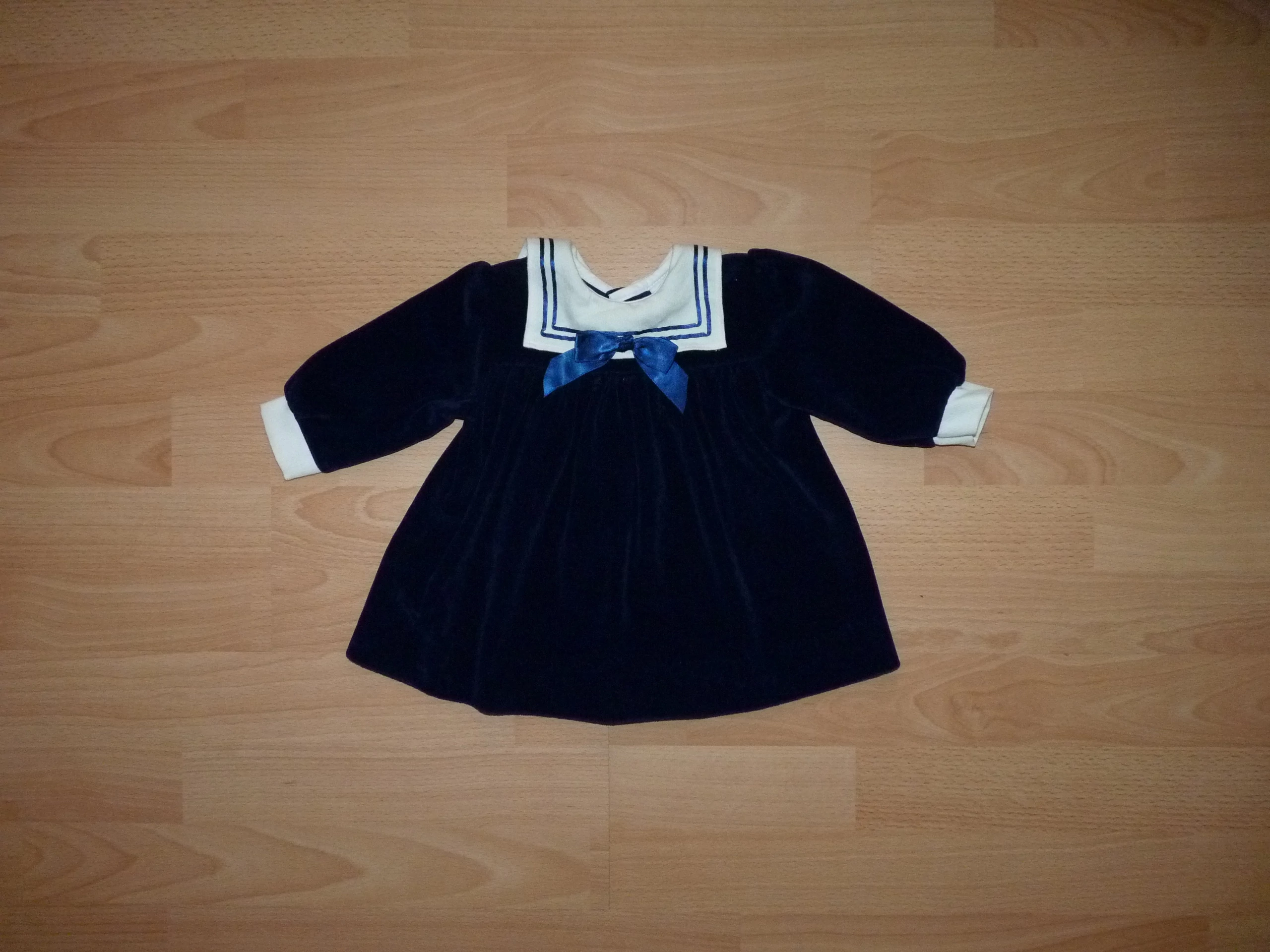 Tündéri sötétkék, puha plüss ruha. Matrózos gallérral, mell résznél enyhén húzott. Nagyon jó állapotú, kényelmes alkalmi ruha. Hátul gombok, hogy könnyebb legyen az öltözködés. |