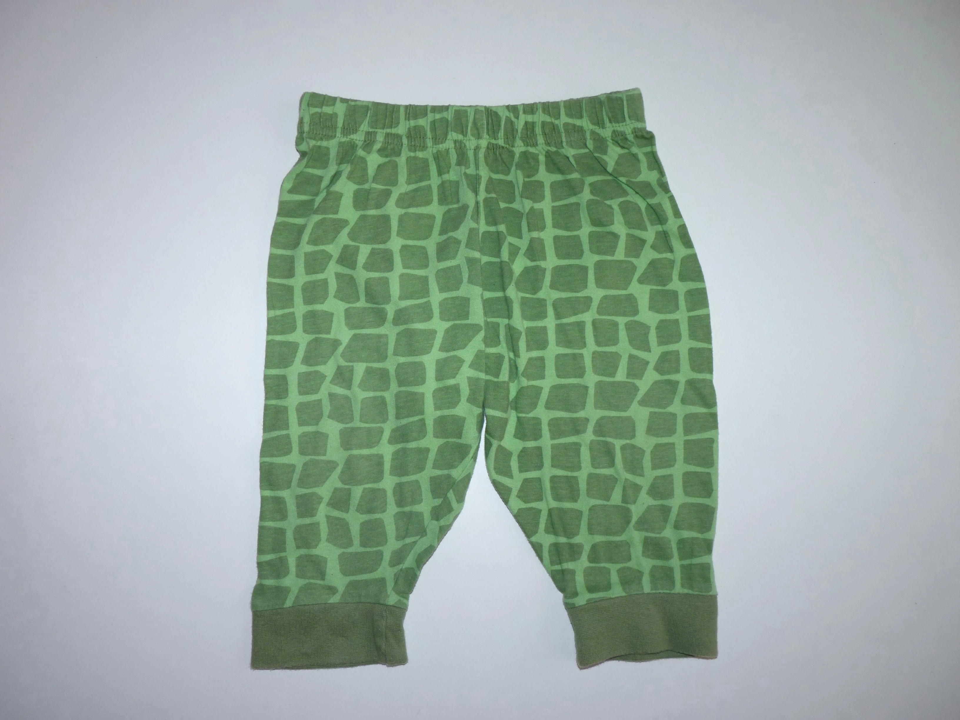 Kellemes viseletű pamut nadrág, szuper teknős páncél mintával. Tökéletes viselet szabadidő nadrágként, vagy pizsamaként egyaránt. Jó állapotú, minimális bolyhosodás felfedezhető. Beleírt méret 12-18 hó. |