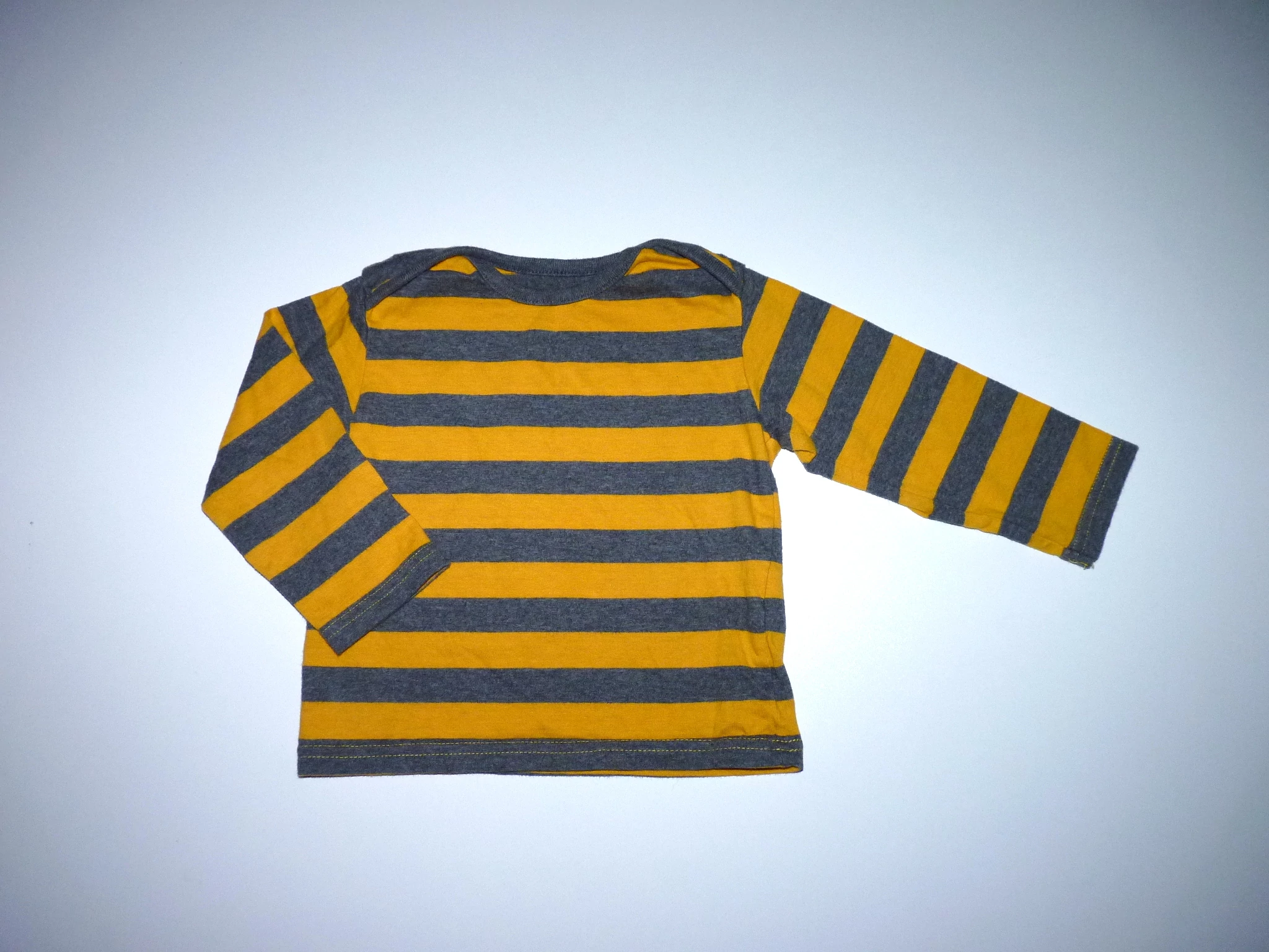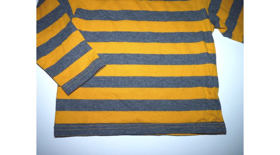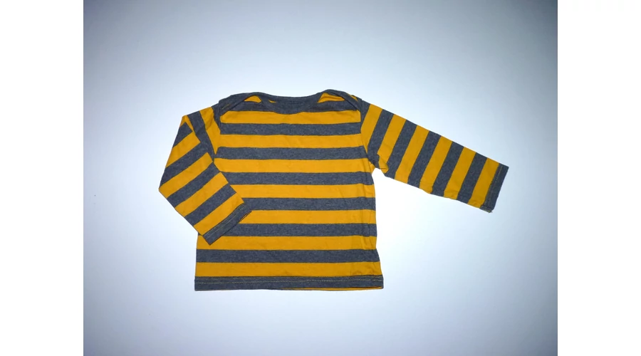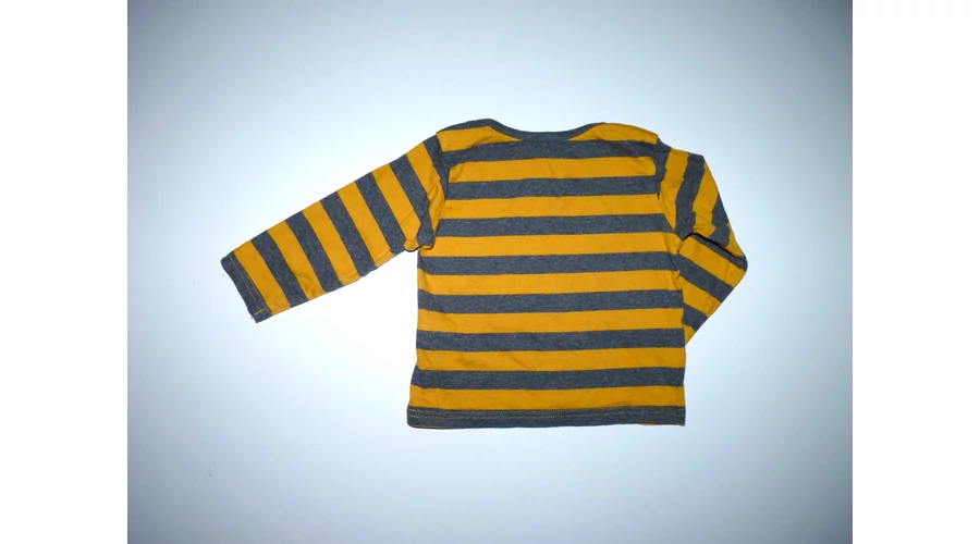 74/80-as M&S mustársárga-szürke csíkos pamut felső