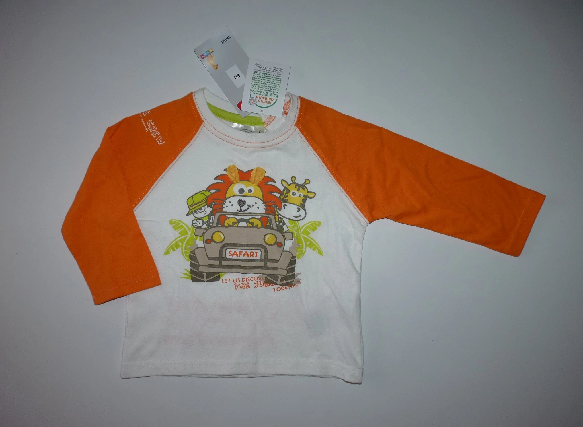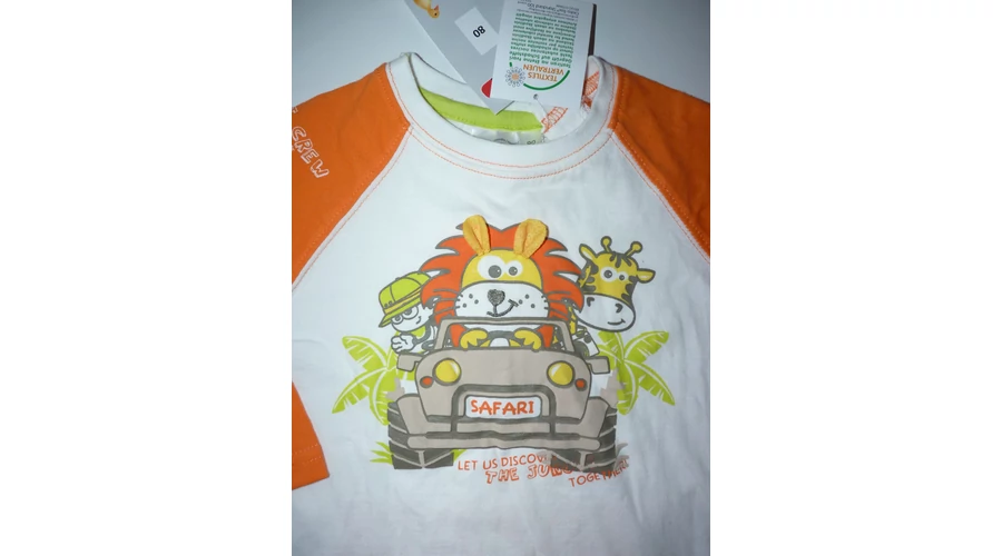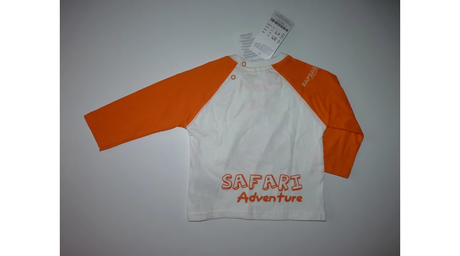 Szuper, kellemes viseletű pamut felső, elején szafaris mintával. Kényelmes viselet, hátul patentok segítik az öltözködést. Beleírt méret 80. |