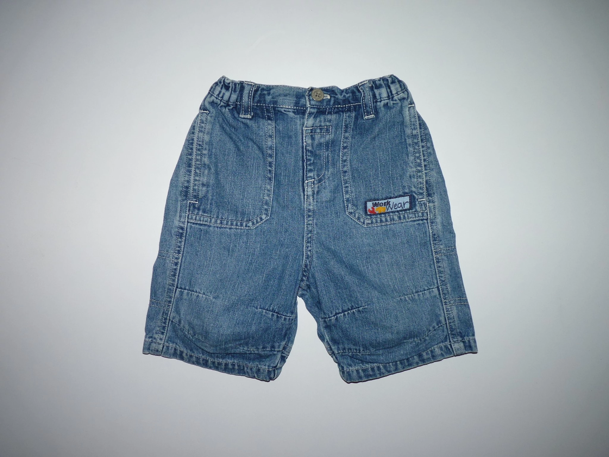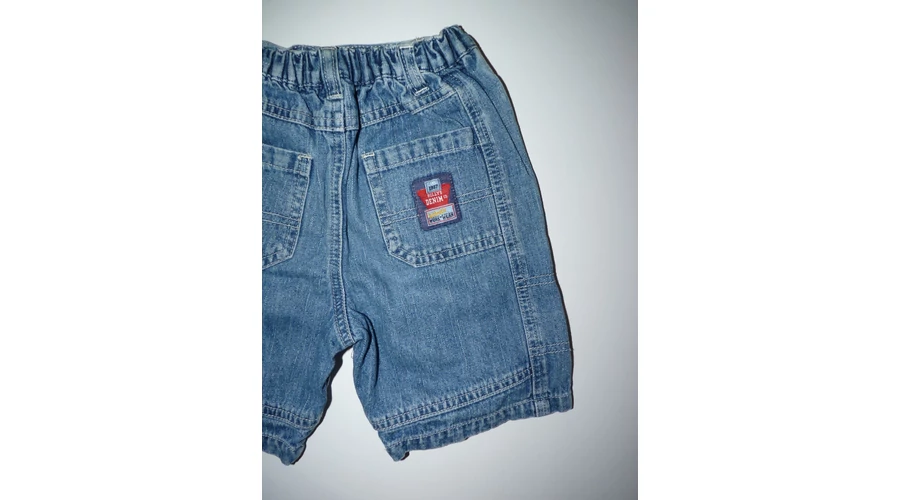 Kellemes viseletű, puha farmer térdnadrág. Kényelmes, gumis derekú, vagány térdvarrásokkal, elől-hátul zsebekkel, övbújtatókkal. Szuper viselet, otthonra, bölcsibe/oviba, akár harisnyával. Nagyon jó állapotú. Beleírt méret 12-18 hó. |