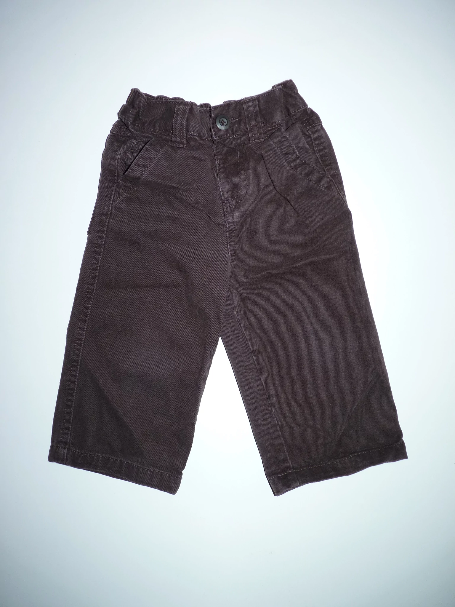 Kényelmes, gumis derekú barna nadrág elől-hátul 2-2 zsebbel, gombos sliccel, derekán övbújtatókkal. Szuper tavaszi/őszi viselet. Beleírt méret 1 - 1 1/2 év (81-86 cm). |