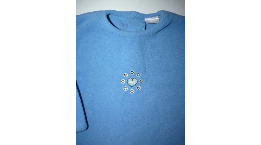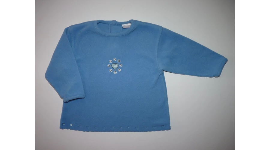 Kellemes viseletű, puha kislány hosszú ujjú felső. Elején szív minta, alul apró szív sorminta. Hátul szív alakú gombok segítik az öltözködést. tökéletes őszi/tavaszi időben, vagy kabát alá egyaránt. Beleírt méret 86. |
