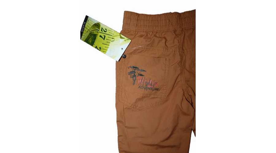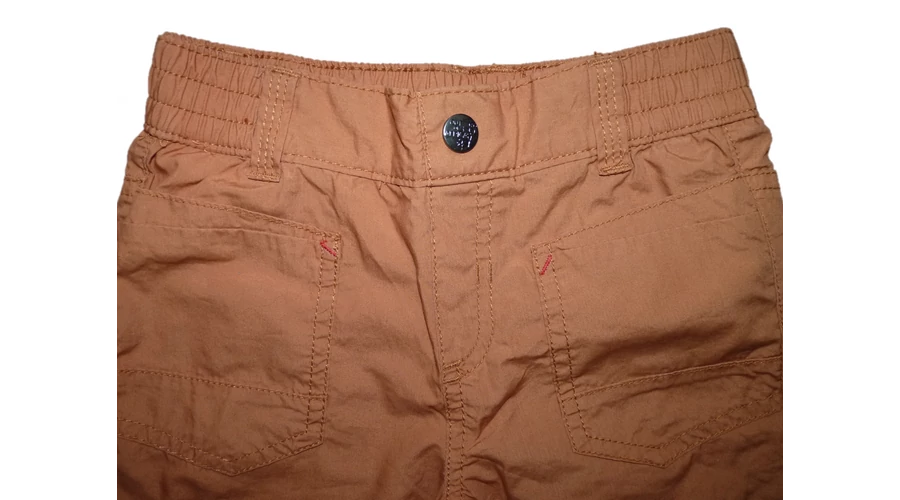 Vagány rövidnadrág kényelmes, gumírozott derékkal, ál-sliccel, övbújtatókkal, elő- és farzsebekkel, farzsebein vagány mintával, térdvarratokkal. Beleírt méret 92. |