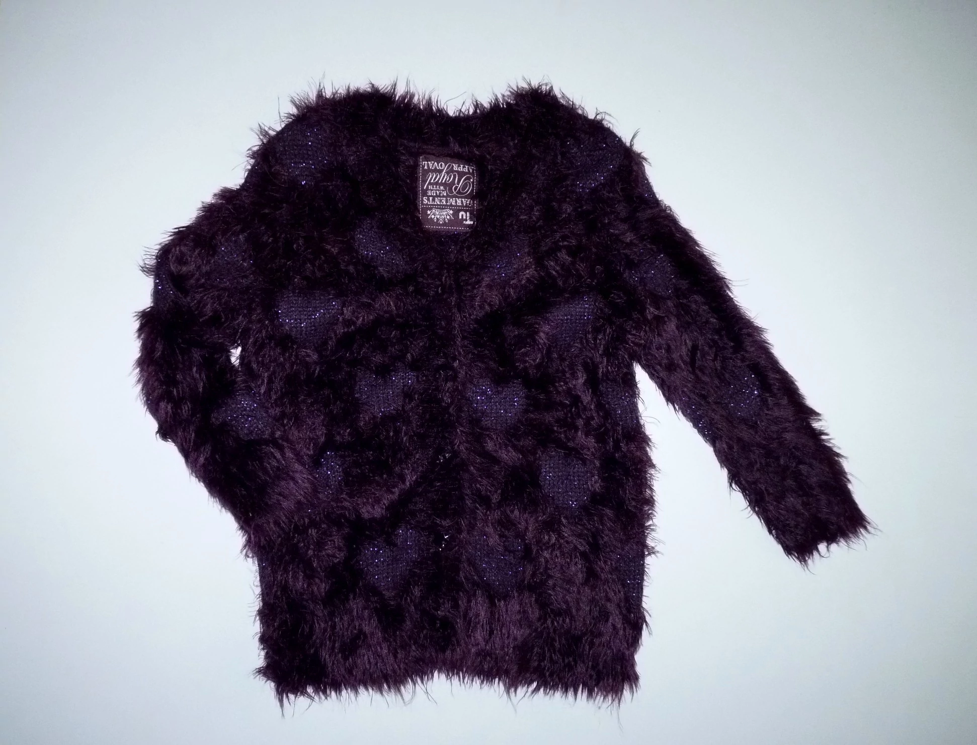 Pihe-puha finomkötött pulóver hosszú ujjal, elől fényes különleges gombokkal, hosszú szőrmés fonalból, szívecskés csillogó fonalból belekötött szívekkel. Kényelmes, rugalmas anyagú. Jó minőségű és állapotú, tökéletes viselet alkalomra és hétköznapokra. Beleírt méret 3 év (98) |