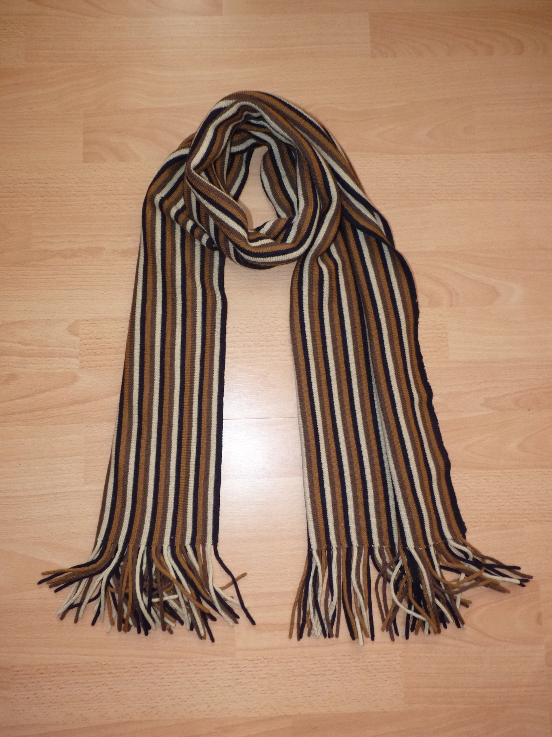Igazi férfias sál, mely széles, így lazán összefogva, de akár kettéhajtva is hordható! Nagyon jó állapotú, az egyik alján a széle kicsit "cakkos" (Fotó) Hossz: 125 cm Szélesség: 48 cm. |