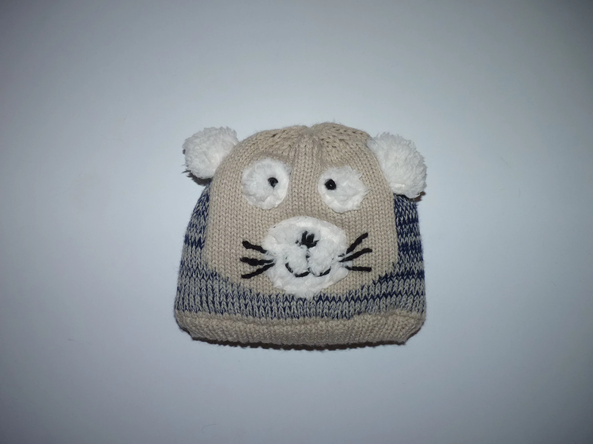 Tündéri kötött sapka, belül puha, meleg bundás béléssel. Drapp-kék színű, aranyos macifej mintával. Kényelmes, rugalmas anyagú. Beleírt méret 6-12 hó (68-80)• Alsó átmérője: 16-27 cmx2 |