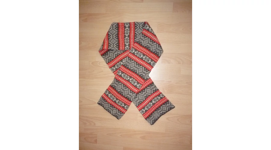 Drapp-piros-szürkésbarna színű mintás gyapjúsál