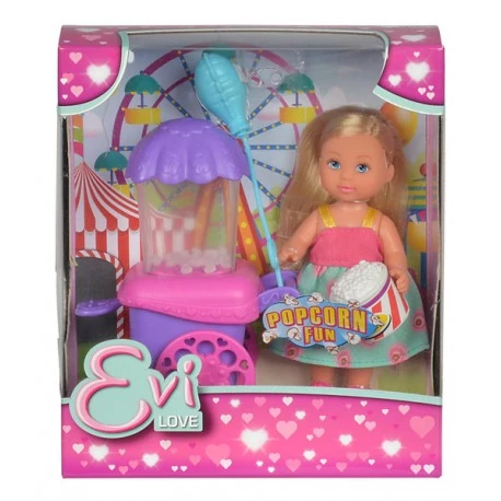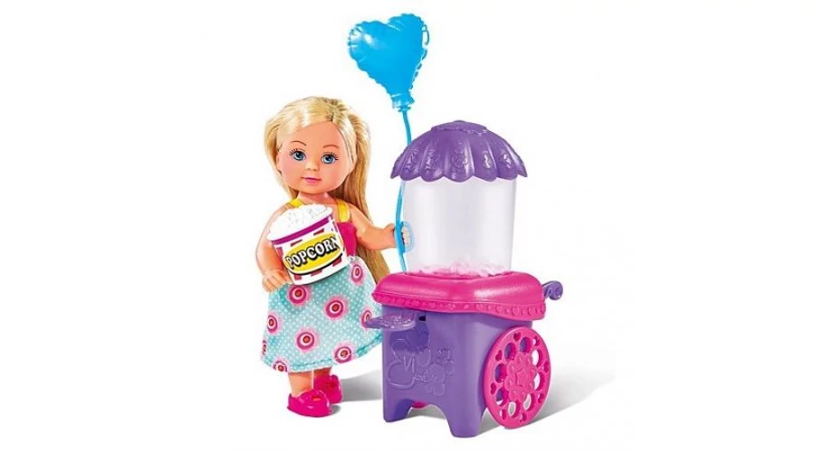 Szuper játékot kínál ez a szett, melynek csak a képzelet szab határt. Képzeld magad és Évi babát a vidámparkba, ahol mehettek kedvencetekhez, és vehettek pattogatott kukoricát. De akár te is lehetsz a popcorn árus. Nyomd le a kart és a kis kukoricák pattogni kezdenek a gépben. Tarts kerti partit, vagy nyári pikniket, ennek a gépnek mindenhol hasznát veszed...A szett tartalma: