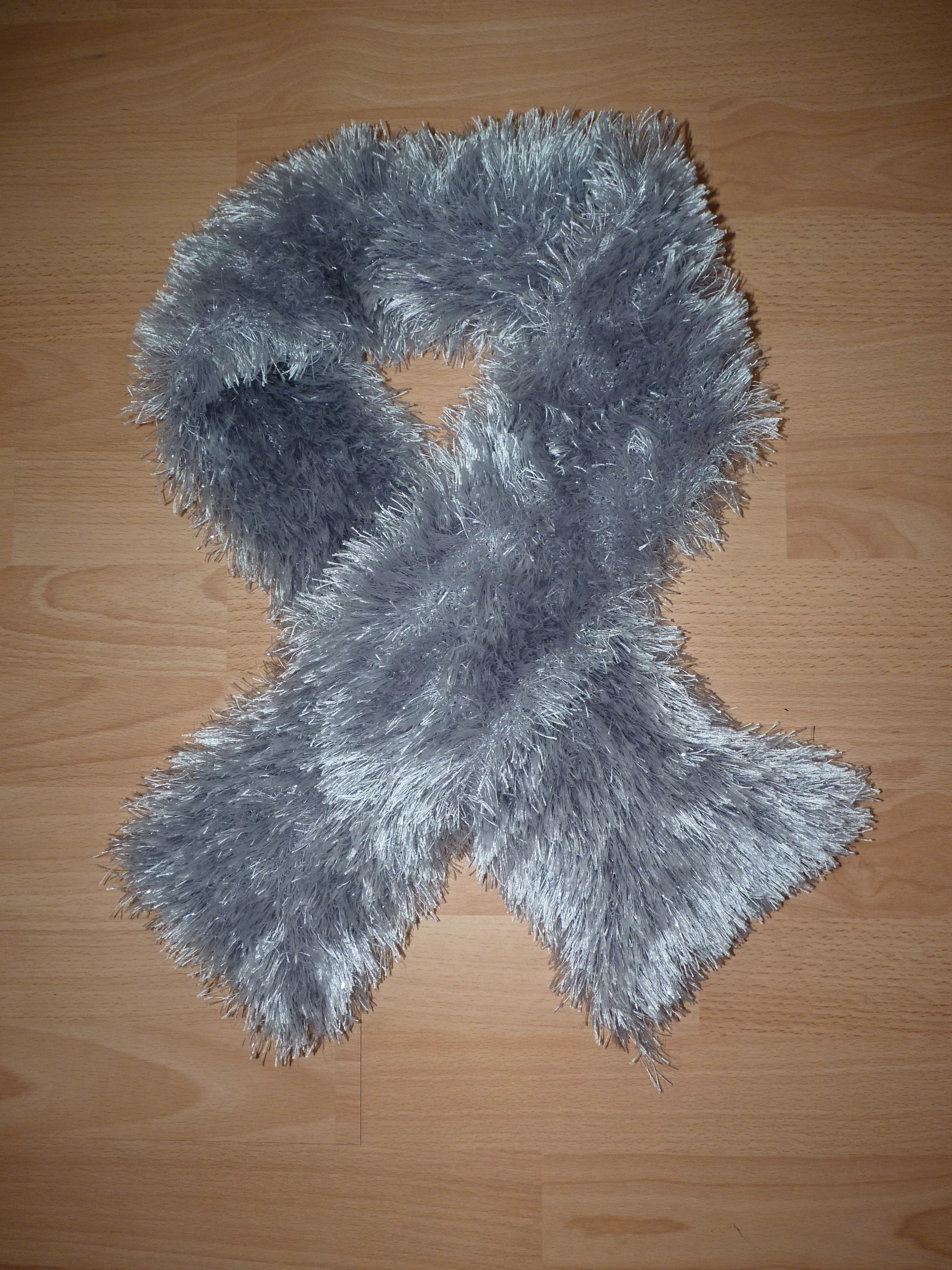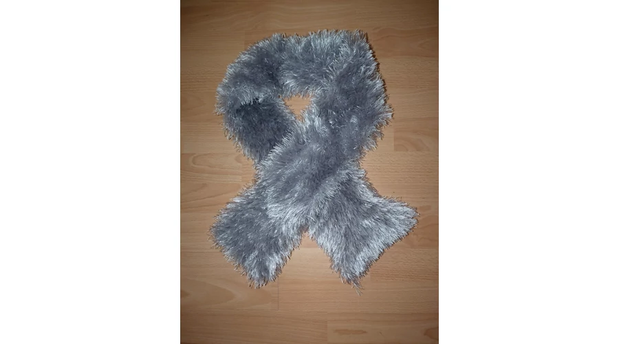 Nagyon szép, 145 cm hosszú, ezüst színű sál. |
