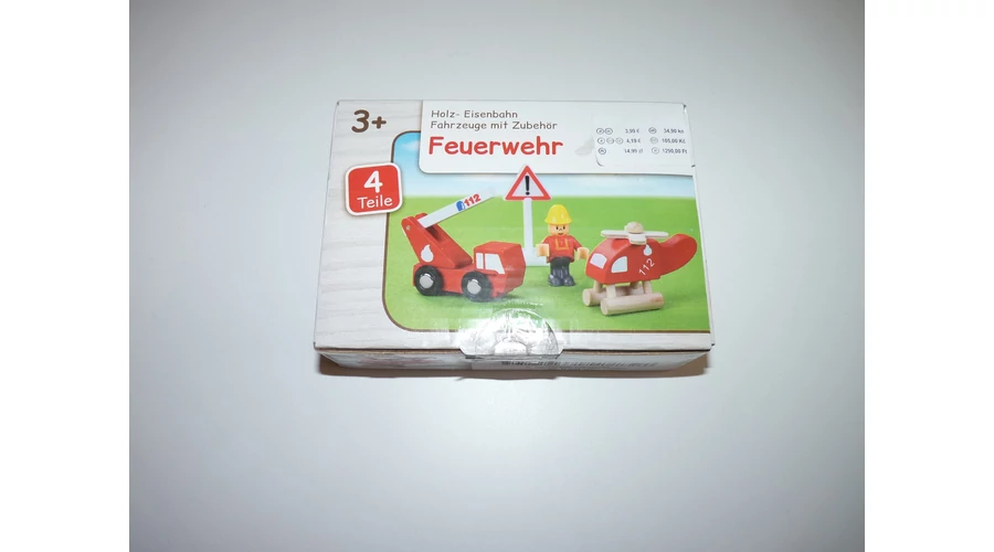 4 darabos, szuper festett fa tűzoltóautós szett. Kiváló szerepjátékokhoz, fejleszti a fantáziát és a manuális készségeket.Tartalma: