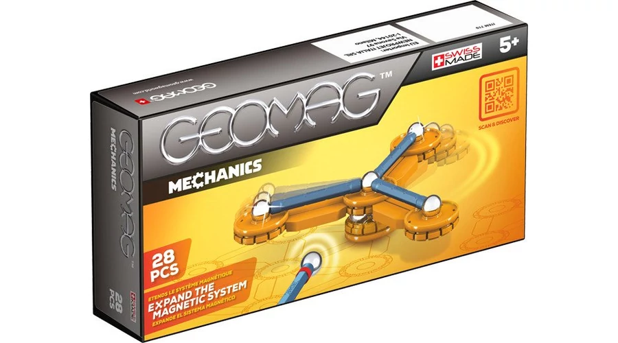 A Geomag Mechanics Mágneses építőjáték, 28 db a belépést jelenti a Geomag Mechanics világába: fedezd fel a forradalmian új elemeket, és keltsd életre Geomag játékodat! A Geomag egy rendkívül sikeres kreatív fejlesztőjáték gyerekeknek, általánosan 5-től 15 éves korig. A játék egyszerű elemekből áll: mágneses, műanyag borítású rudacskákból és nem mágneses fém golyókból.