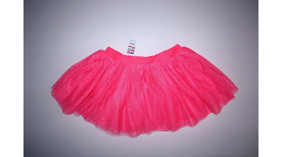 Bővülő, rétegelt tüllszoknya gumírozott derékkal, csillámló felső tüllel. Beleírt méret S/M. |
