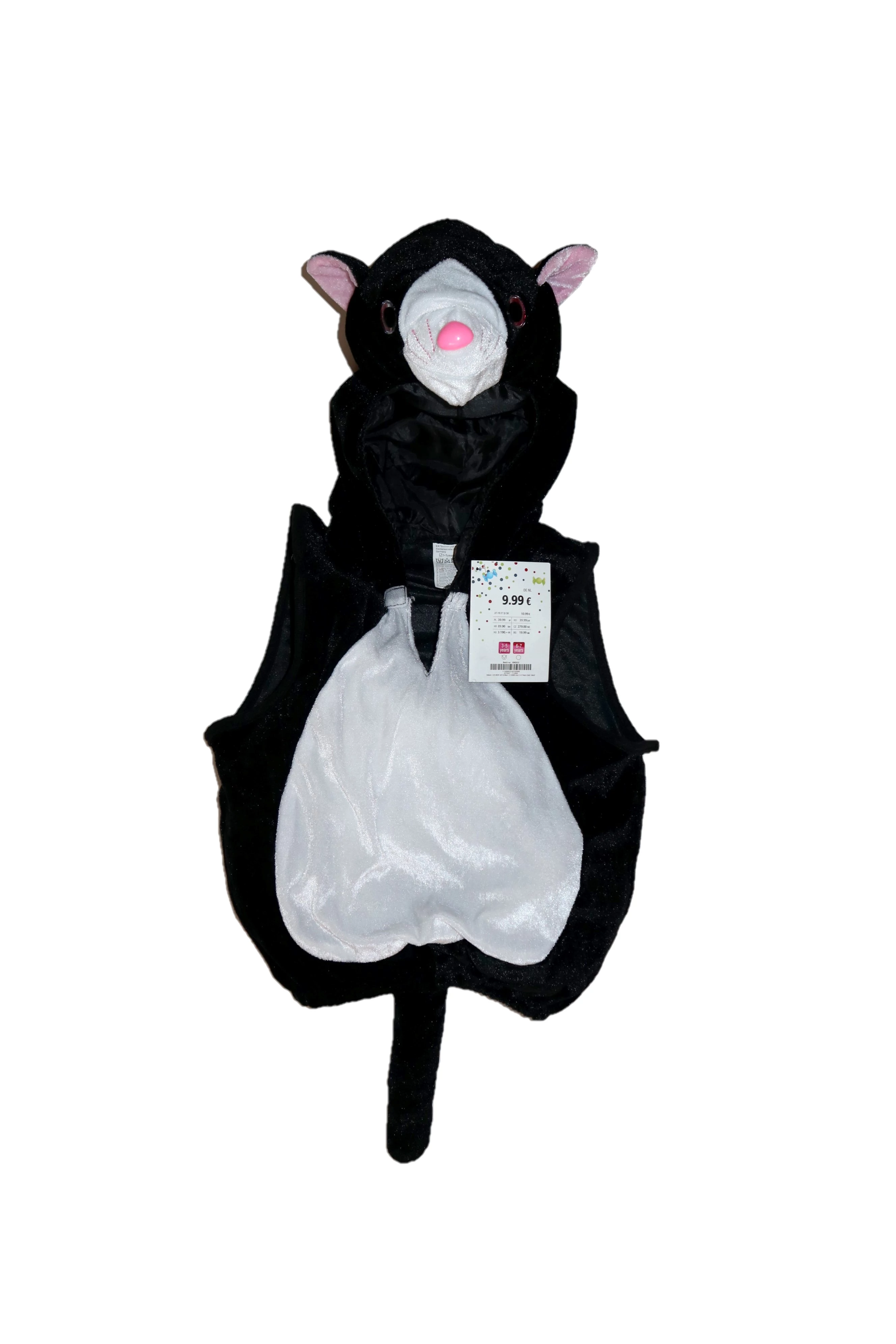Puha, hastömött, ujjatlan velúrjelmez nyaki első részén tépőzárral, alsó szegélyén laza gumírozással, letépőzárazható farkincával, cicafejes kapucnival. Új, címkés terméke. Beleírt méret 3-5 év. |