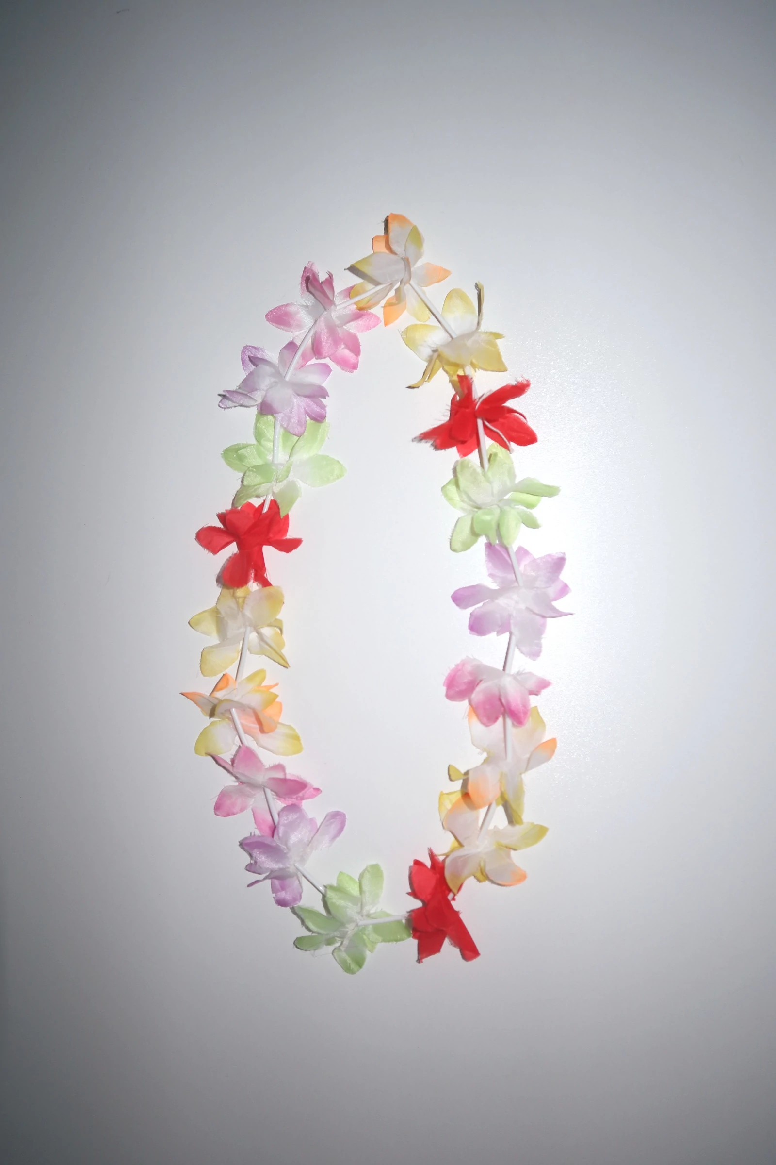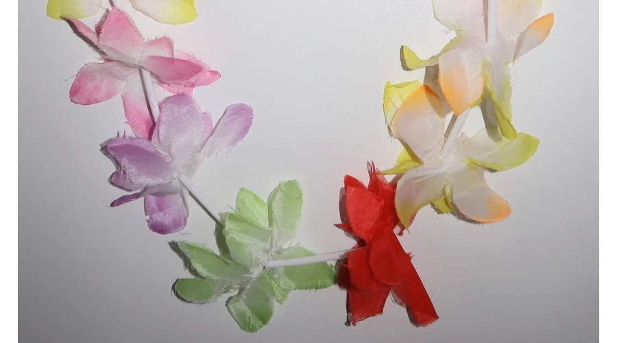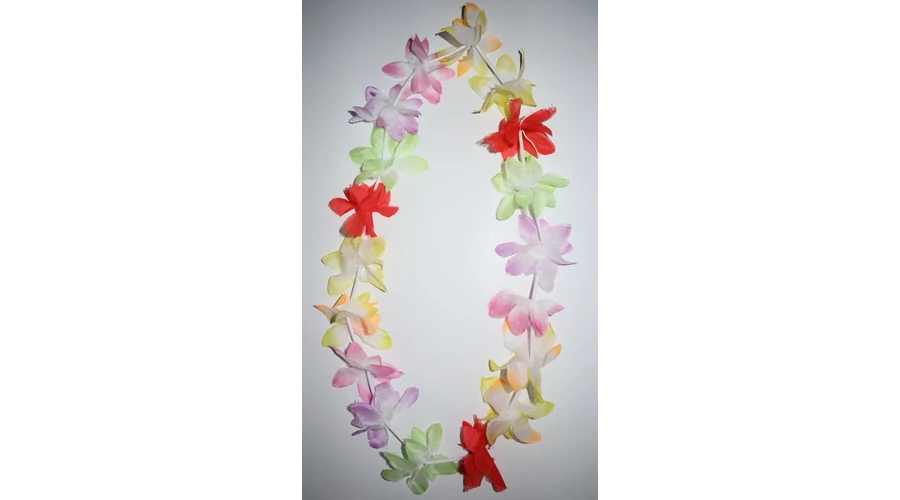 Hawaii virágfüzér színes virágokból. Összezárva mért hossz 47 cm. |
