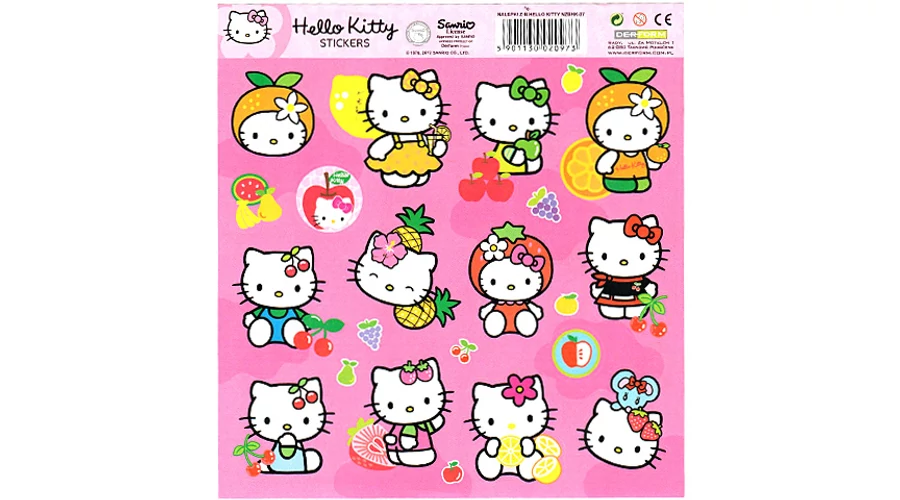 A kedves mesefigura Hello Kitty néz vissza ránk, ezekről a tündéri gyümölcsös szép matricákról. Vajon melyik Hello Kitty kedvence? Melyik a Te kedvenc gyümölcsöd?Rajzolj, majd díszítsd rajzaidat a matricákkal, vagy használati tárgyaid dísze is lehet. Jelölhetsz vele fontos eseményeket a naptárban, vagy készíthetsz ajándékot barátaidnak.Tartalma:15 db egyszerűen felragasztható matrica |
