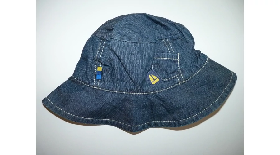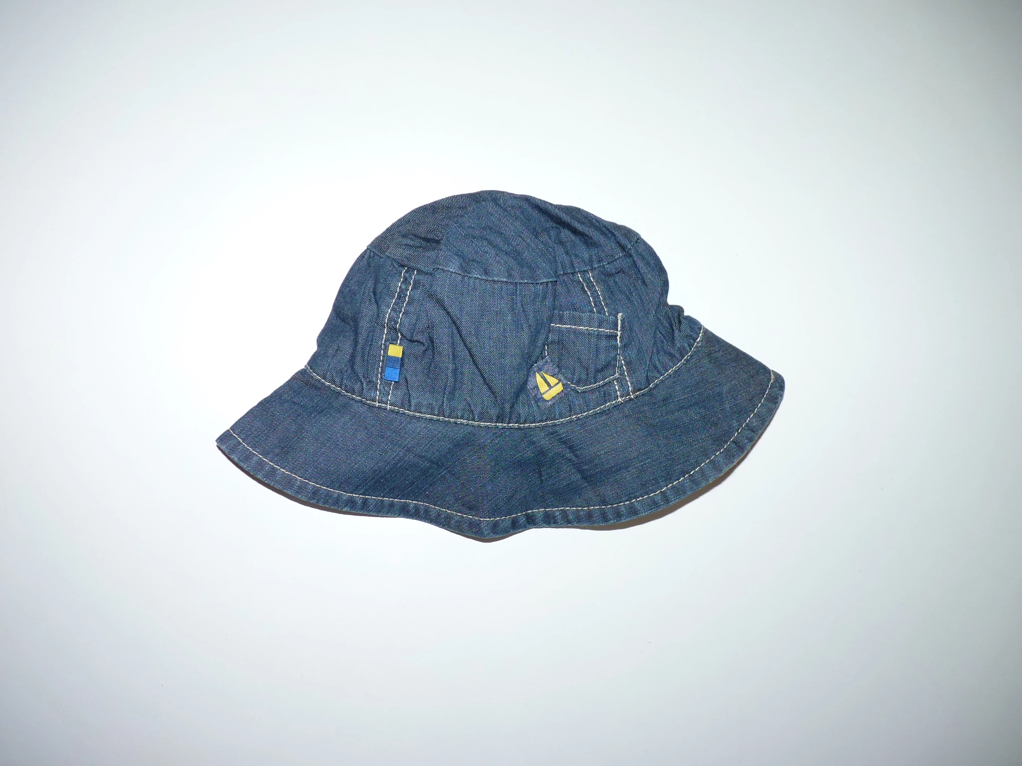 Kellemes viseletű, puha farmerkalap, belül melírszürke pamut belsővel. Vagány varrások, apró zseb, kis hajó teszik különlegessé. Szuper viselet jó időben, de egy fotózás kiegészítője is lehet. Nagyon jó, újszerű állapotú. Beleírt méret up to 6 months. |