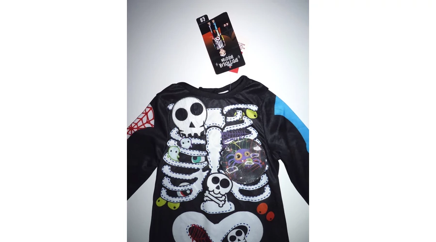 Különleges dzsörzéjelmez elején és karján csontváz mintával, pókokkal, koponyával, hologramos emblémával, hátán tépőzárral. Beleírt méret 6-9 hó (68/74) |