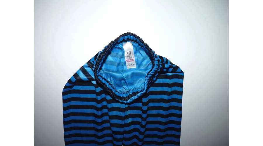 Dzsörzé fekete-kék csíkos jelmez nadrág gumírozott derékkal, egyenes szárral. Tökéletes kiegészítője lehet kalóz, madárijesztő, bohóc...jelmeznek.Jó állapotú. Beleírt méret 1-2 év (81-92cm). |