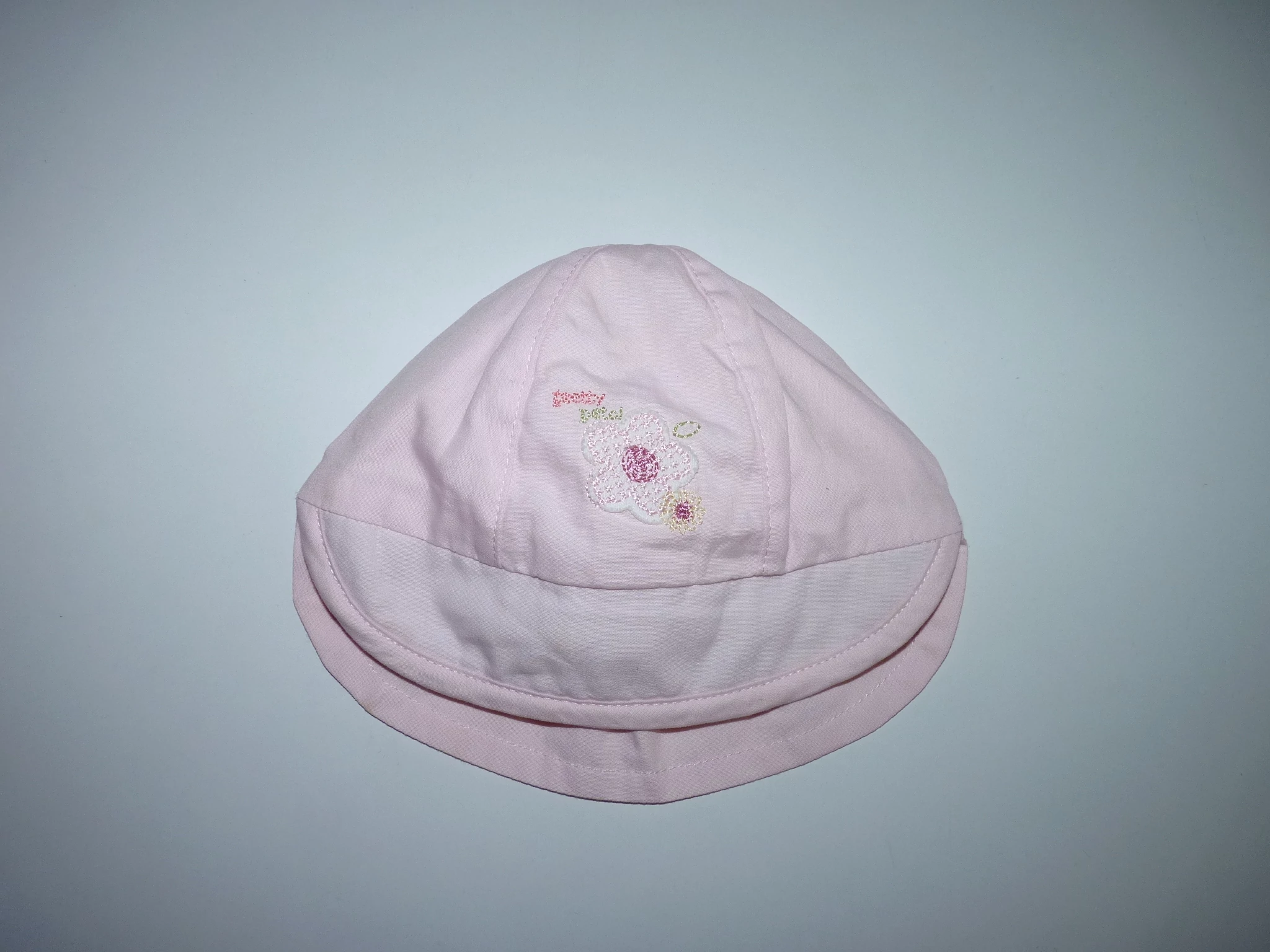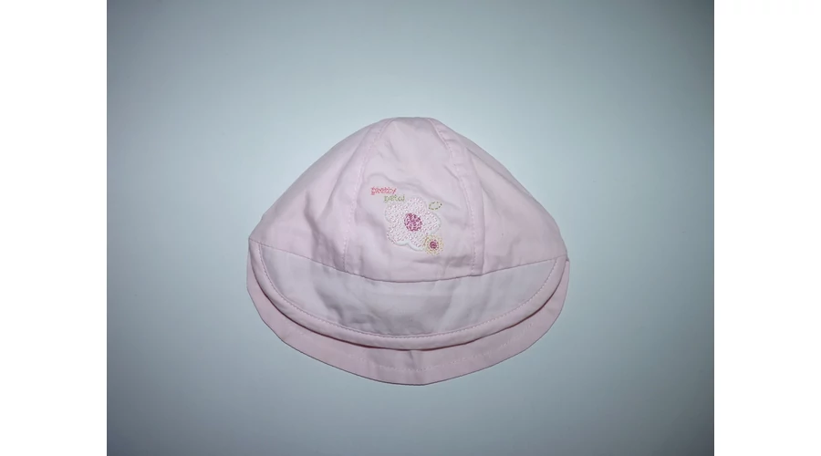 Puha pamut sapka, elől kis napellenzővel, hátul tarkóvédővel, enyhe gumírozással, elején tündéri virág mintával, pamut belsővel. Beleírt méret new born. |