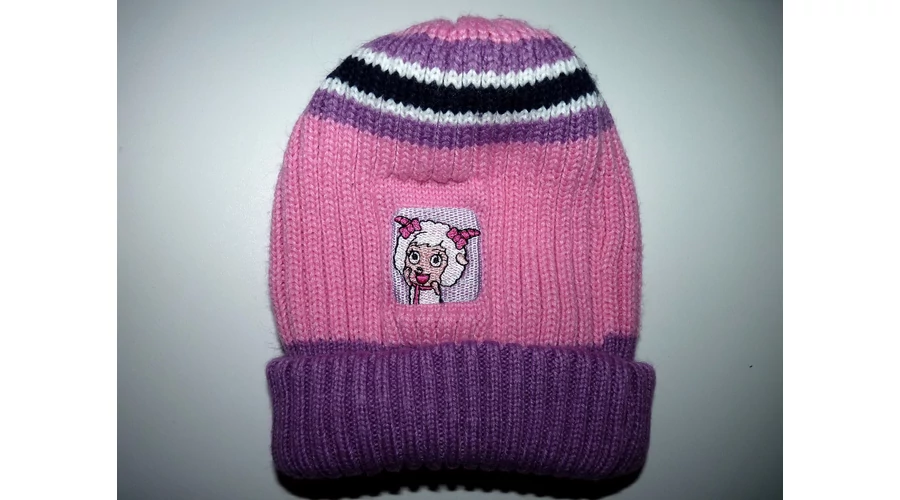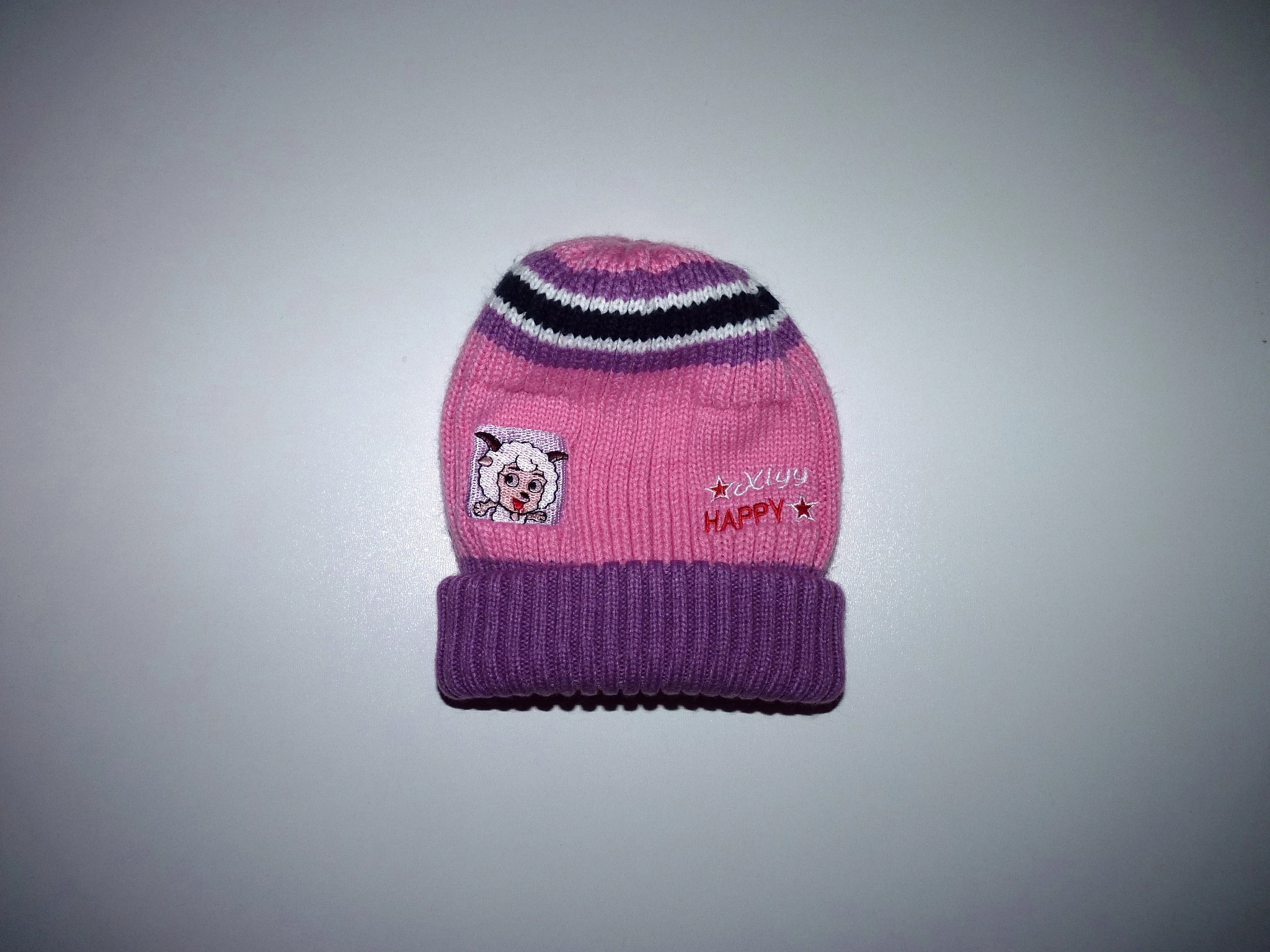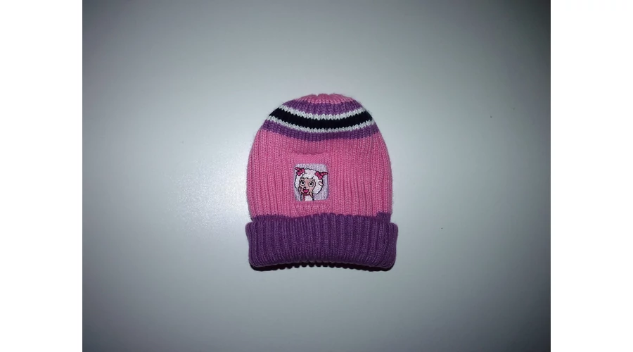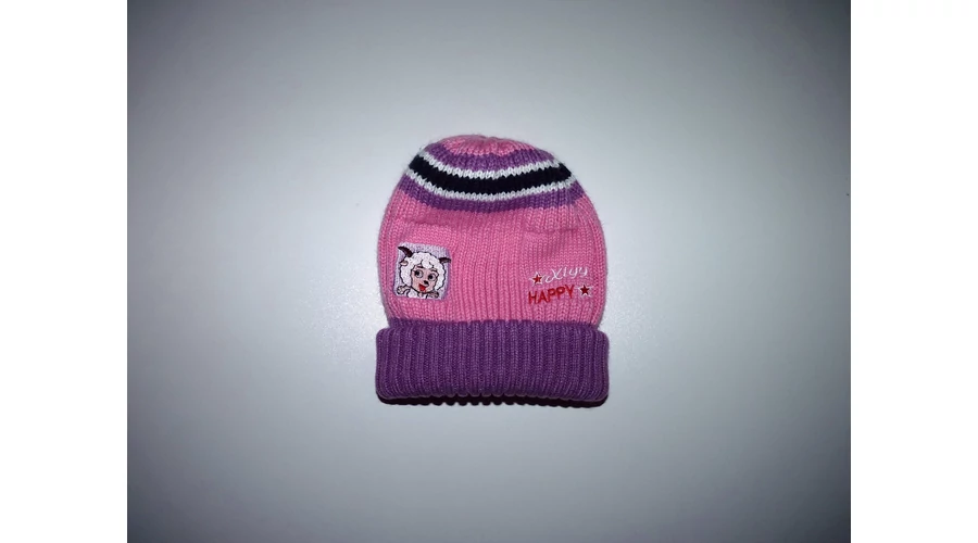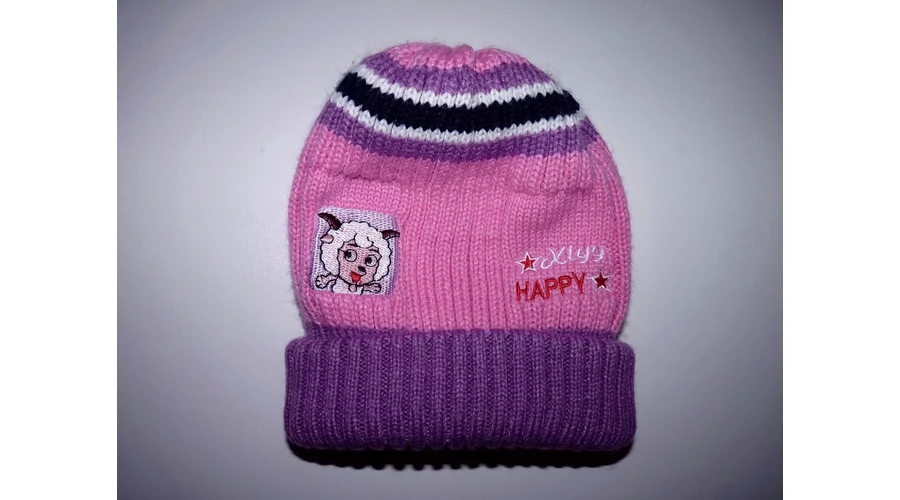 Rózsaszín-lila kötött sapka bárányos mintával - ~2-4 év