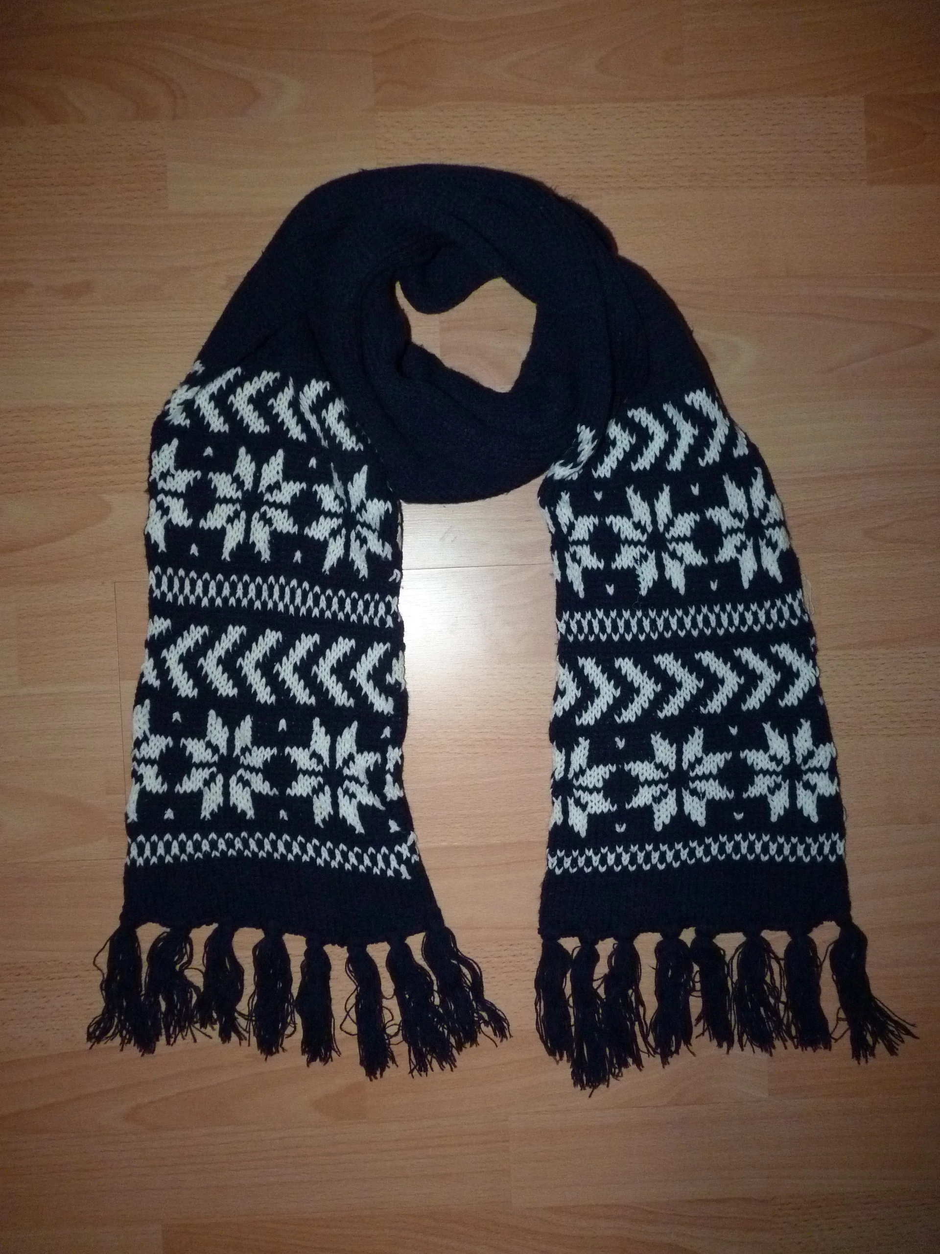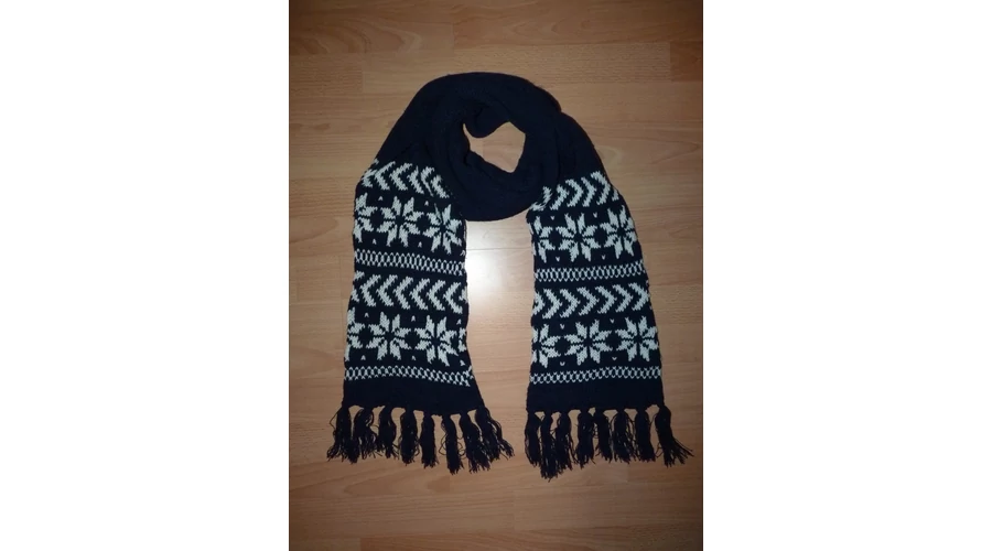 Kötött, meleg férfias sötétkék sál fehér mintával