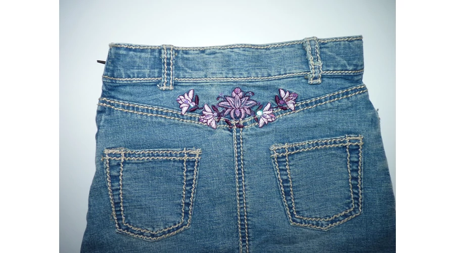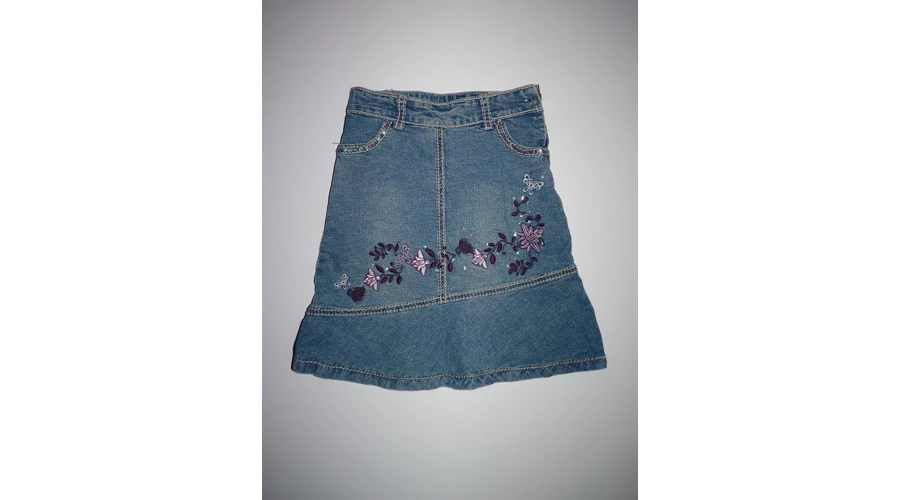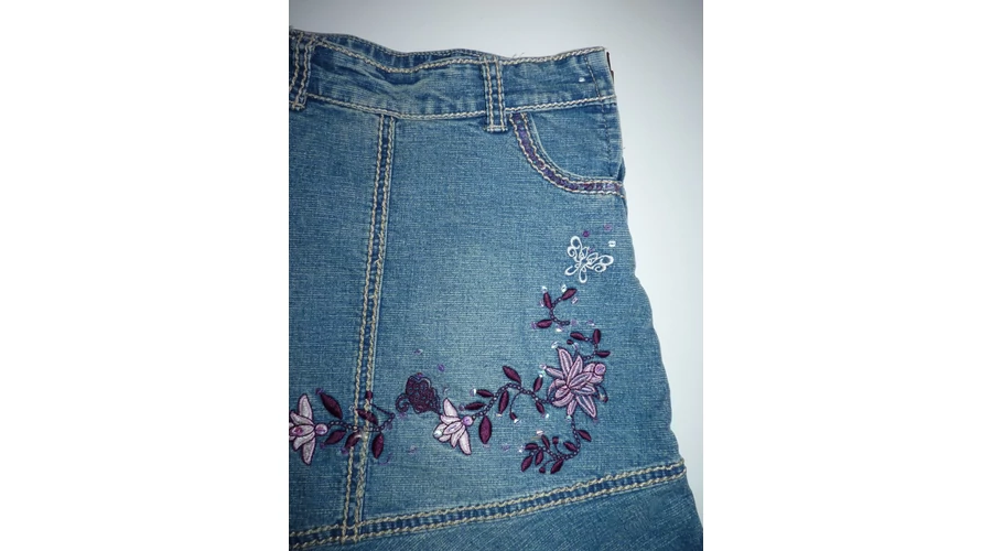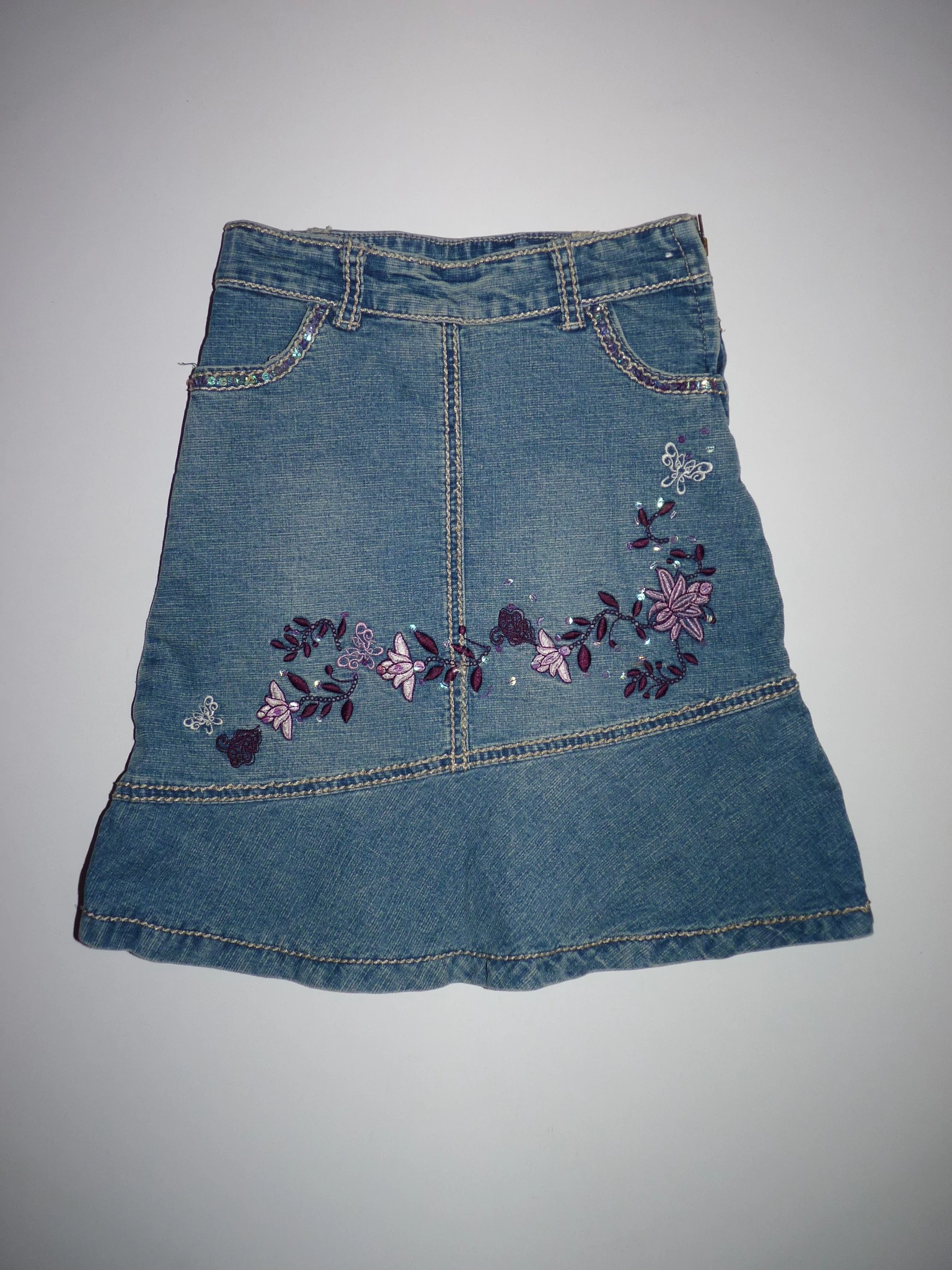 Csinos kislány farmerszoknya csodaszép virágokkal, rávarrt flitterekkel díszítve. Enyhén "A" vonalú, alul enyhe fodorral. Kényelmes gumis derekú, oldalán cipzár segíti az öltözködést. Beleírt méret 4-5 év. |