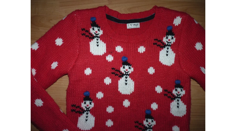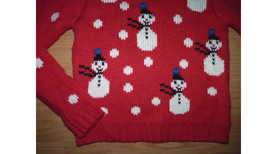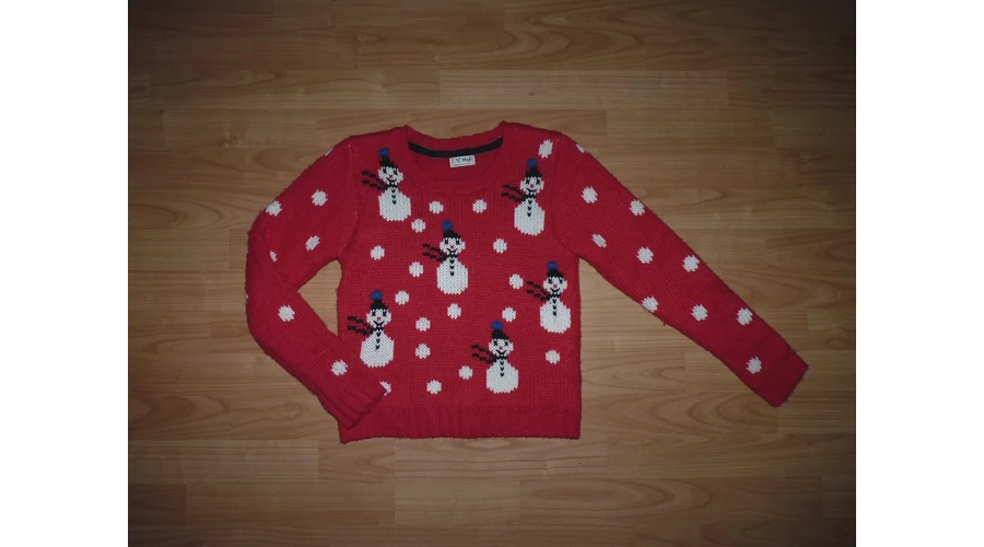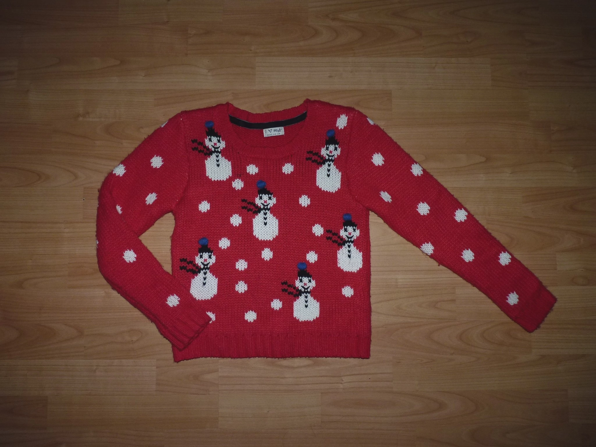 Szuper téli, vastag kötött pulóver, elején vidám hóemberes mintával, hópelyhekkel. Kényelmes, igazi téli, karácsonyi viselet. Jó állapotú, némi bolyhosodás felfedezhető. Beleírt méret 9-10 év (140) |
