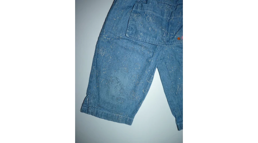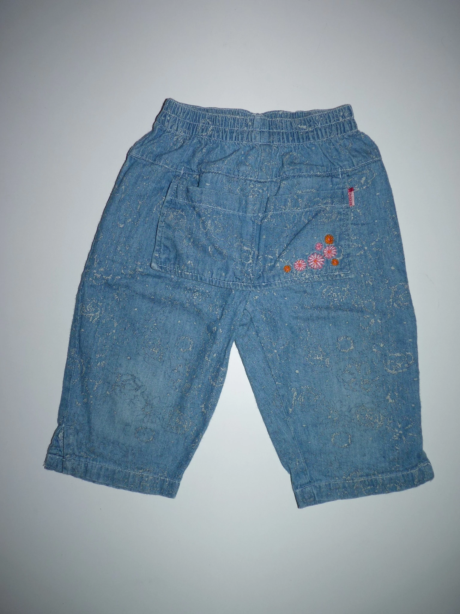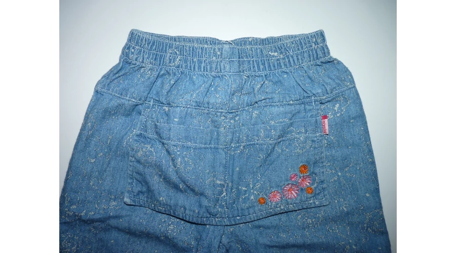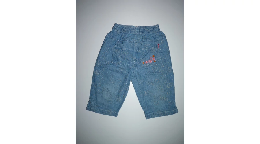 Különleges, vagány kislány farmernadrág. Kényelmes, gumis derekú, vékony, elején kenguru zseb virág mintákkal. Beleírt méret 80/18 hó. |