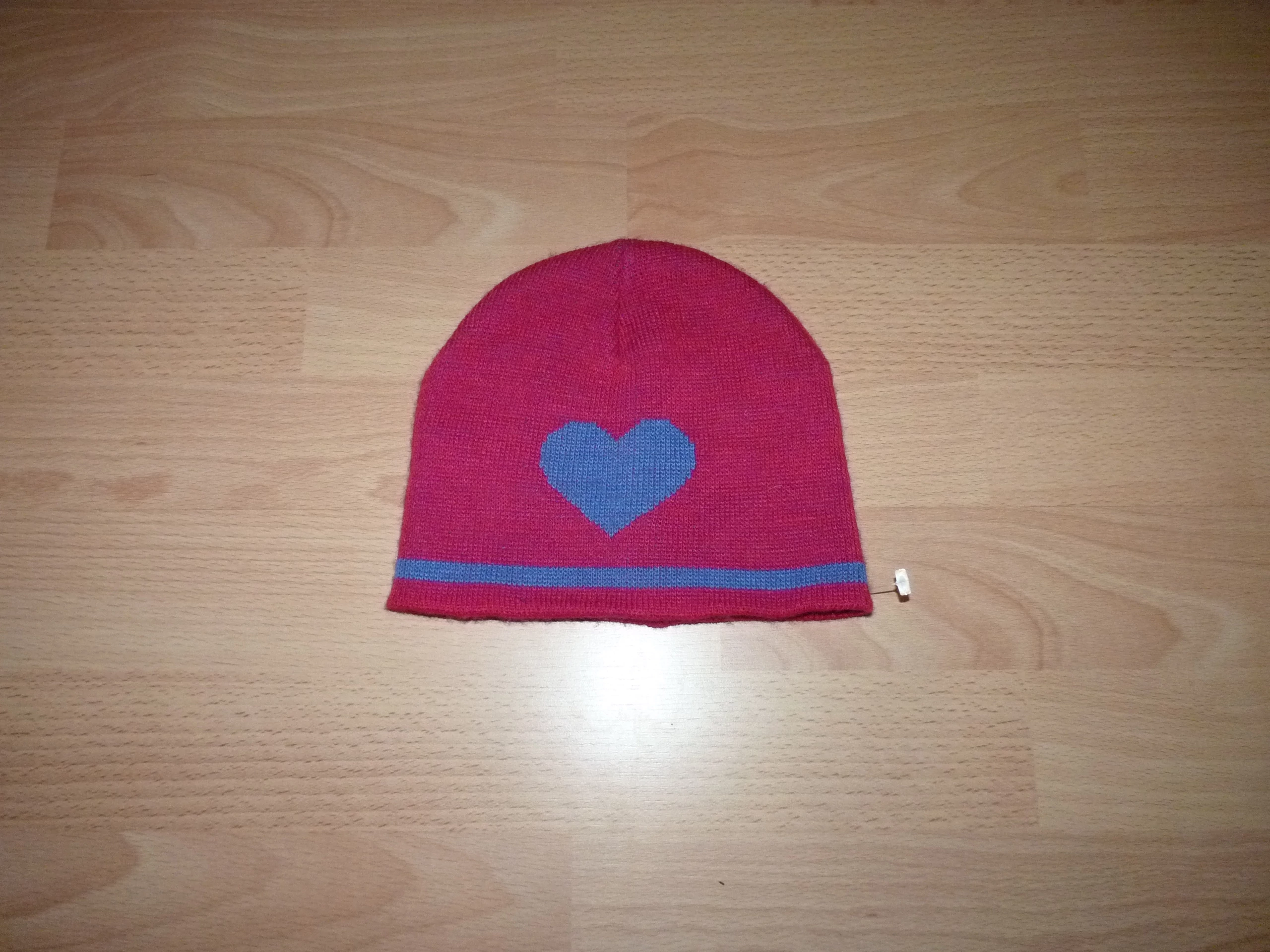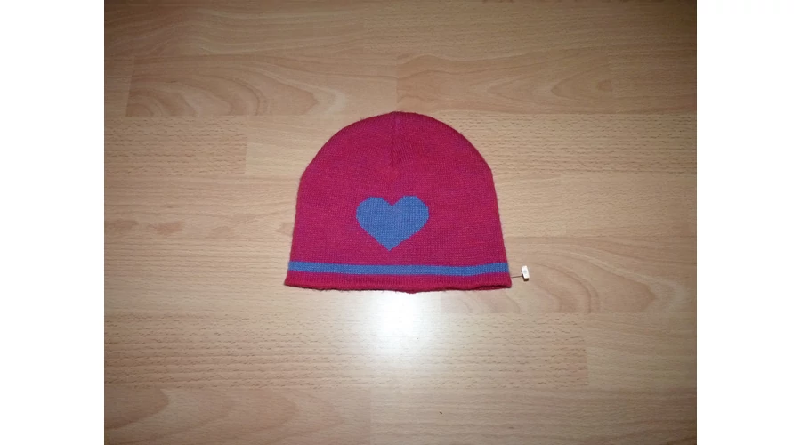 Nagyon jó állapotú kötött sapka, ciklámen-kék színben, szív mintával.Alsó átmérője: 19-25 cmx2 Tetejétől az alsó karimáig a hossza: 17 cm |