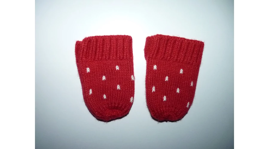 Piros hópelyhes kötött kesztyű 6-12 hó