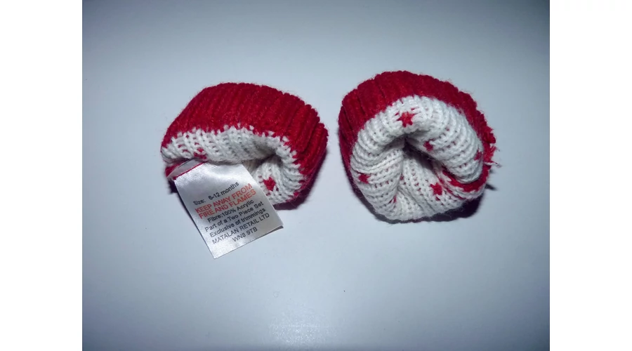 Kellemes viseletű, ujjnélküli kötött baba kesztyű. Piros alapon téli fehér hópihe mintás, enyhén rugalmas. Beleírt méret 6-12 hó.Hossz: 9 cmSzélesség csuklónál: 5,5-8 cm |