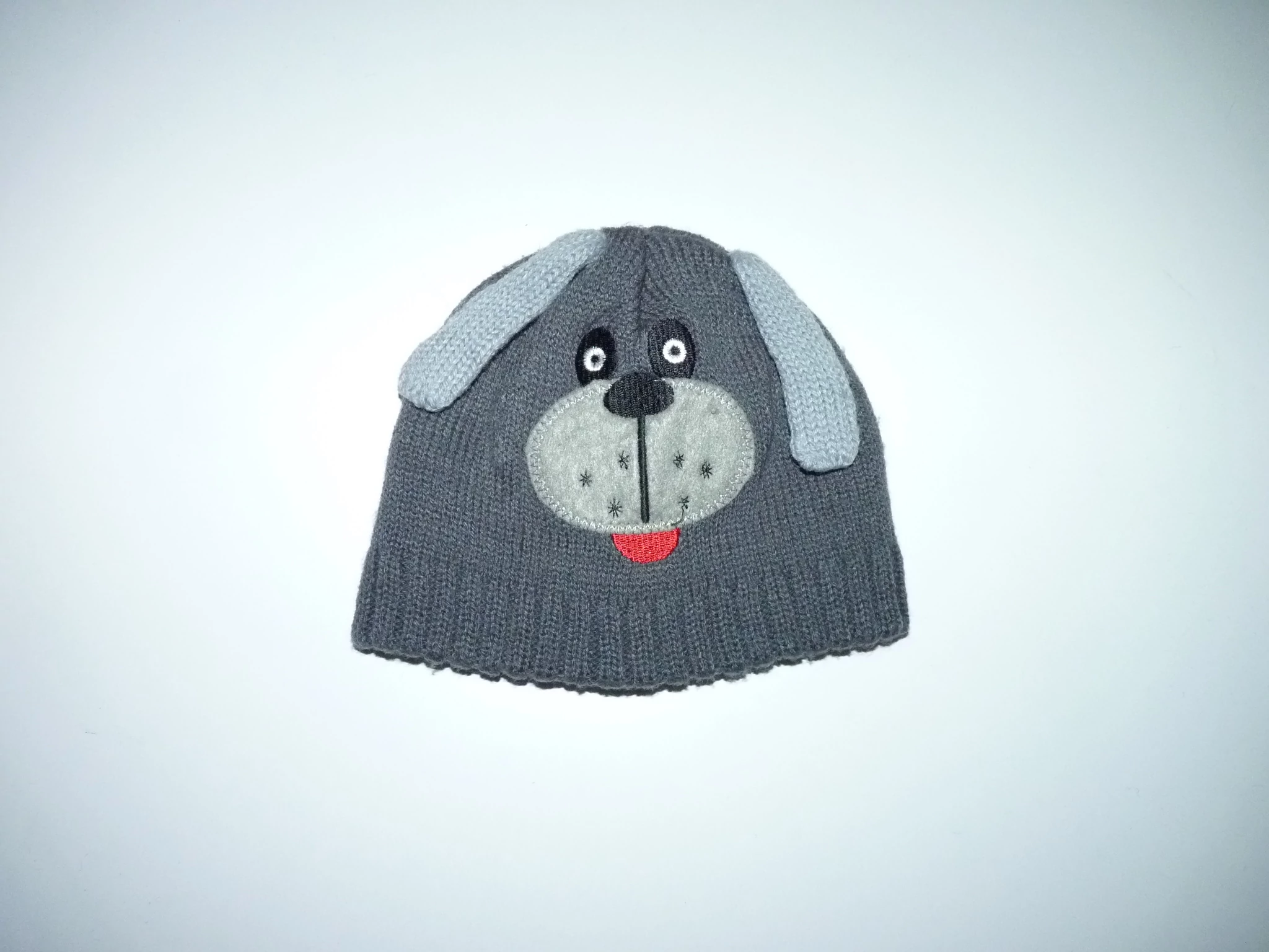 Tündéri, kellemes viseletű, szürke kötött sapka kutya mintával. Kényelmes, rugalmas, igazodik a gyerek fejéhez. Nagyon jó minőségű és állapotú. Beleírt méret 6-12 hó. |