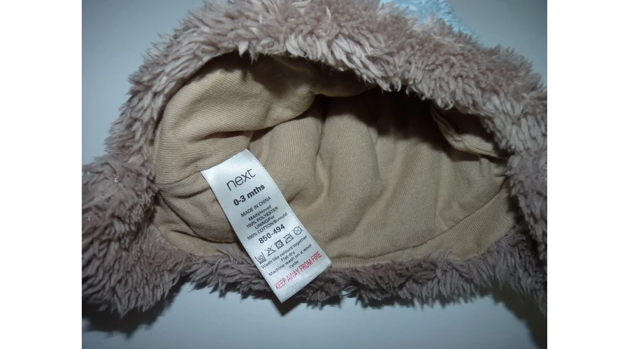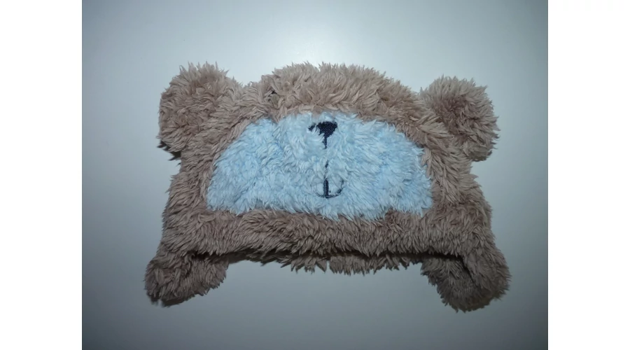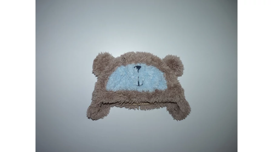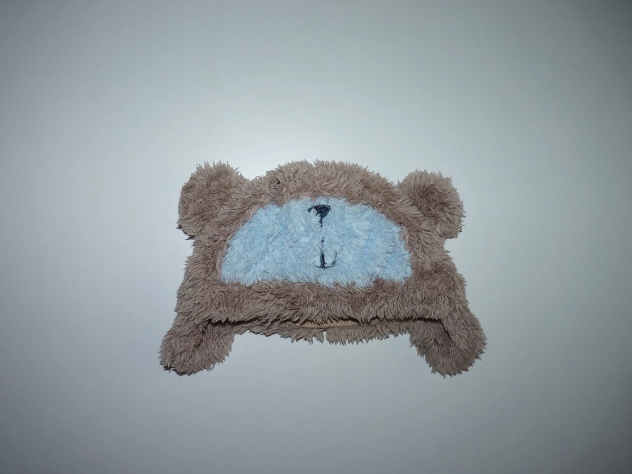 Kellemes viseletű, pamut bélelt, kívül puha szőrmés macis sapka. Beleírt méret 0-3 hó.
