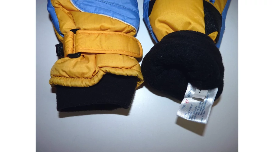 Szélálló, vízlepergető kesztyű téli sportokhoz megerősített tenyérrésszel, gumírozott, tépőzáras kézelővel, Thinsulate™ béléssel. Jó állapotú, egyik ujján kis kékes elszíneződés. Beleírt méret L